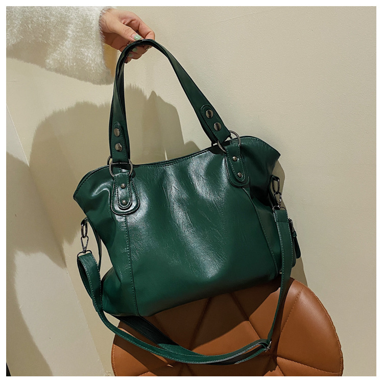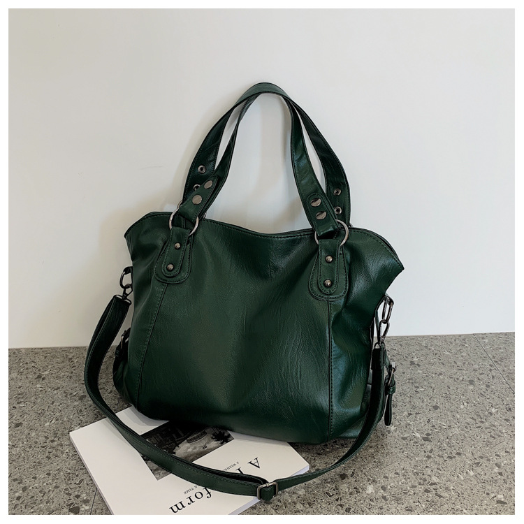 特包欧米のレトロな純色PU大容量のショルダーバッグのソフトレザーのカジュアルな質感に合わせて通勤バッグをクロスボーダーします。