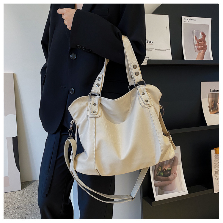 レディース輸出用バッグ 2025年秋 韓国風 大容量ハンドバッグ ソフトレザー シンプル カジュアル ショルダーバッグ クロスボディバッグ