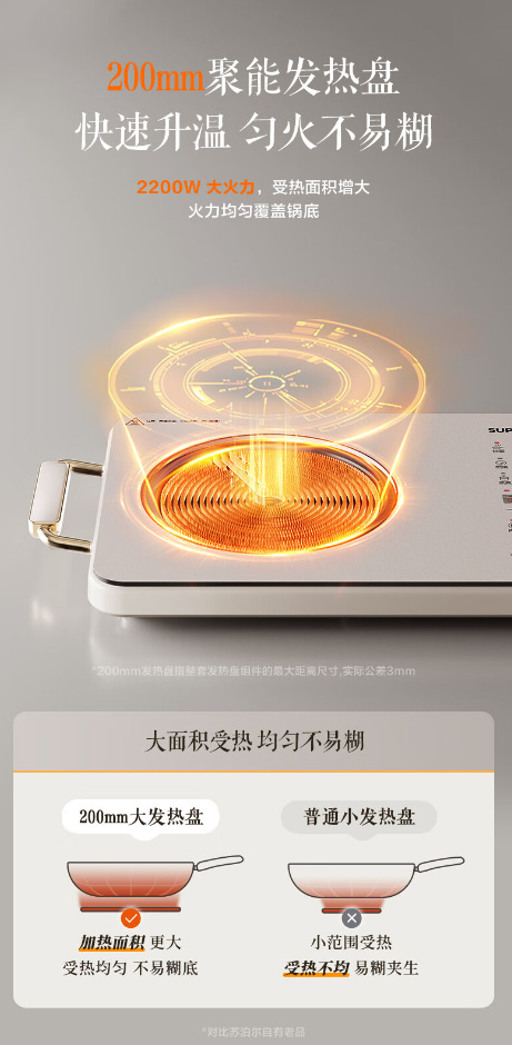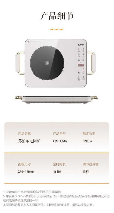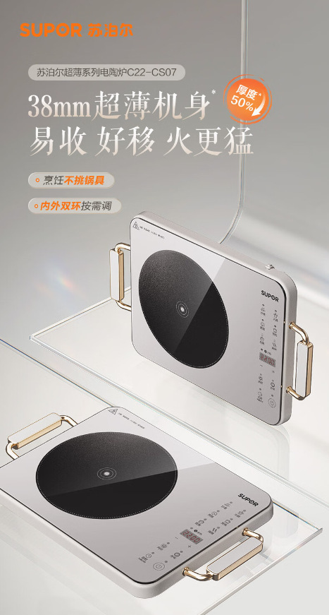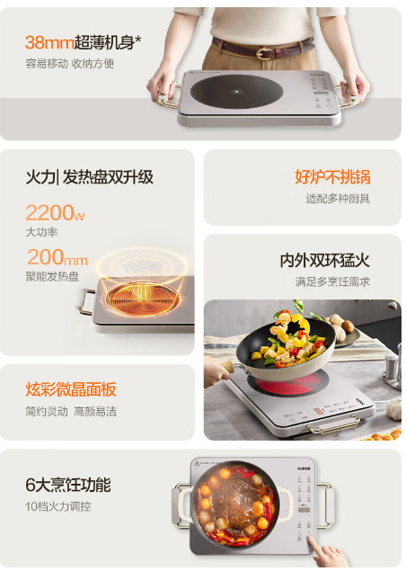 苏泊尔电陶炉电磁炉轻薄家用2200W大火力一体智能多功能C22-CS07
