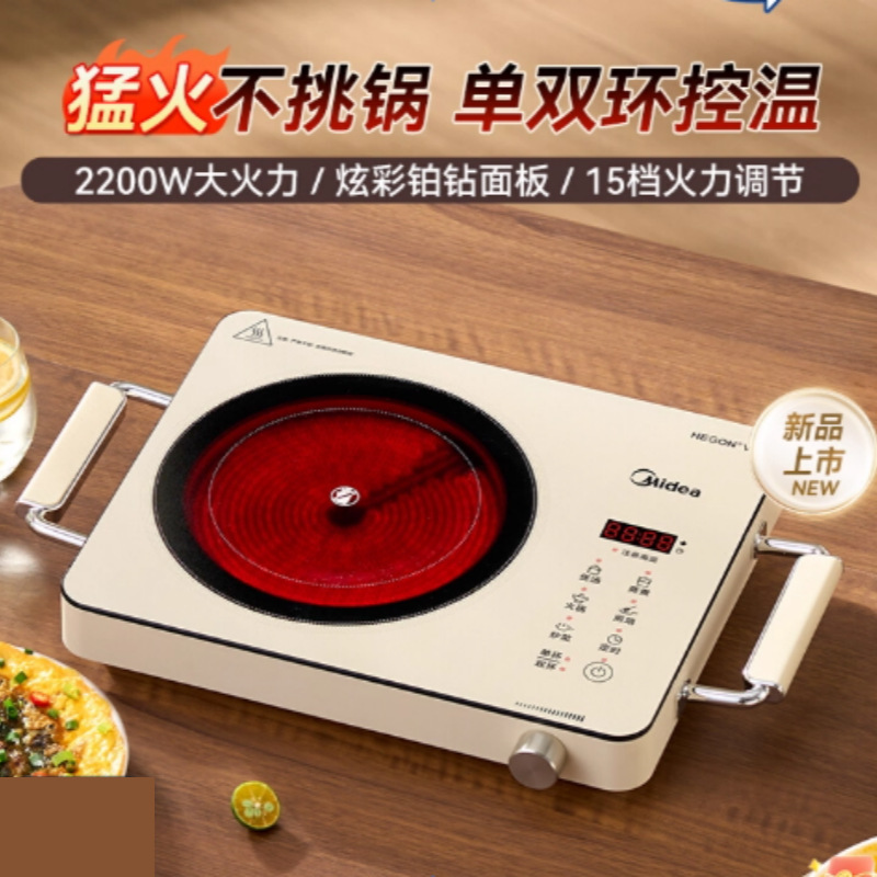 美的电陶炉家用大火力爆炒烹饪多功能一体2200W智能不挑锅电磁炉