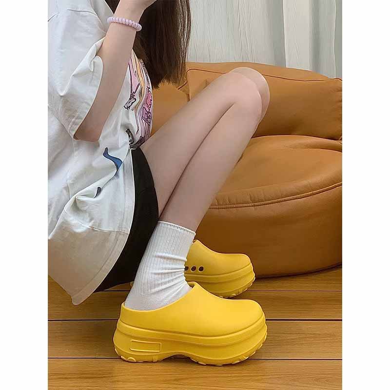 Zhao Lusi のレモンイエローのシェフつま先スリッパ女性用 2025 新しい厚底インビーチハーフスリッパ