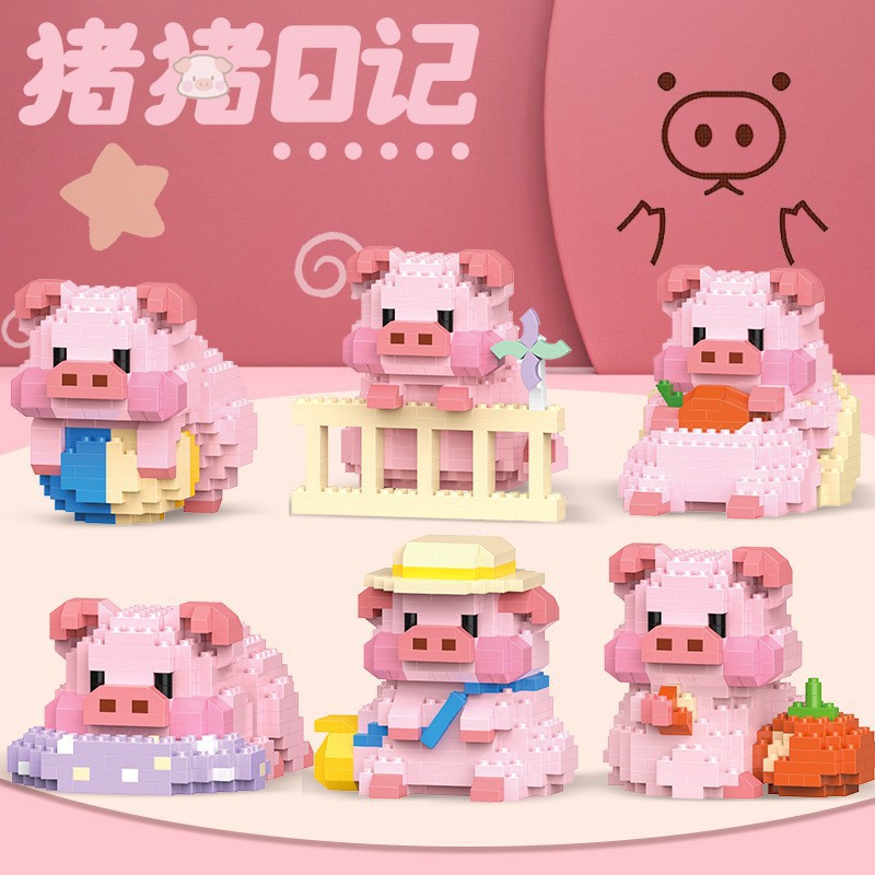 豚の日記はおもちゃの微粒子の積み木の漫画のブタの模型のデスクトップの置物の盲目の箱のぬいぐるみの贈り物をつづり合わせます。
