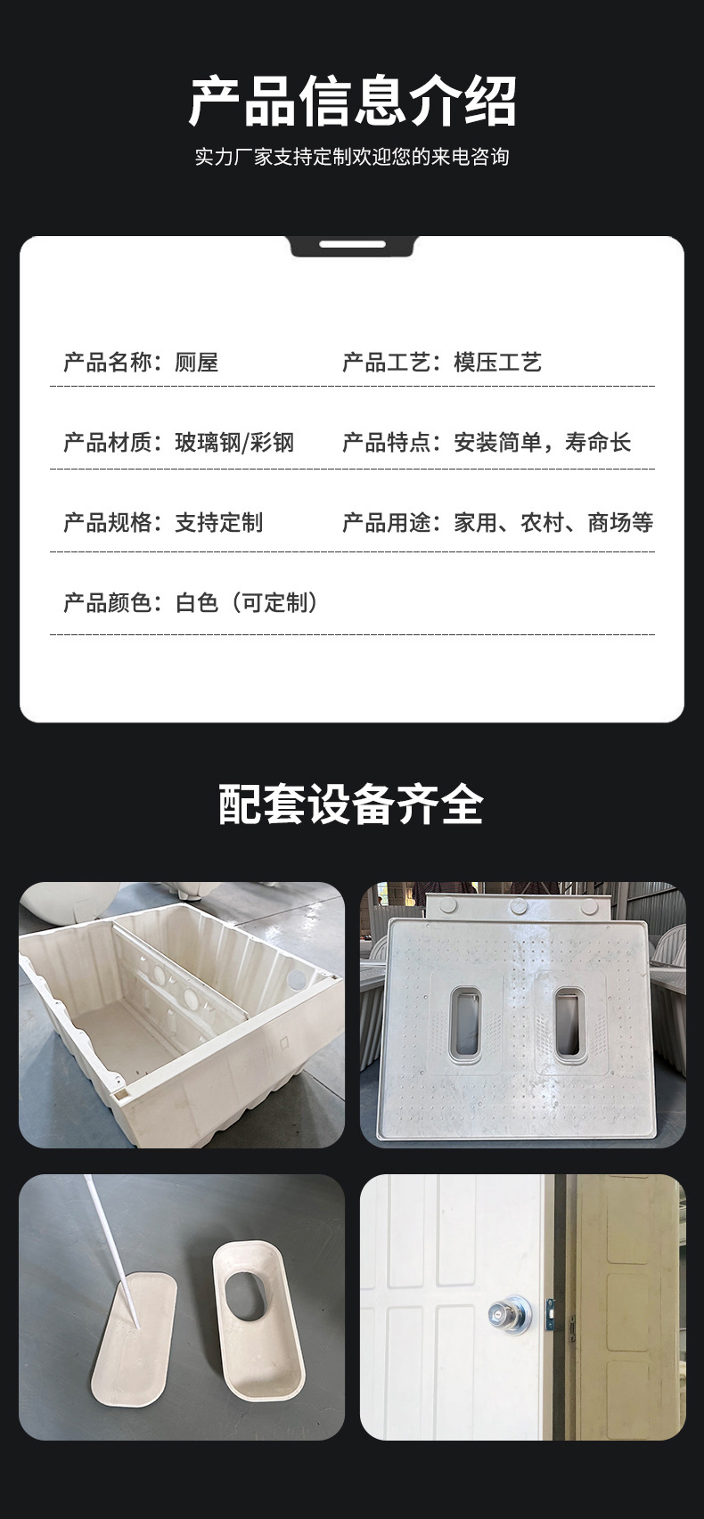 ガラス鋼移動式公衆トイレ生産は二重坑トイレ屋観光地区の簡易式ガラス鋼トイレ屋をつなぎ合わせることができる
