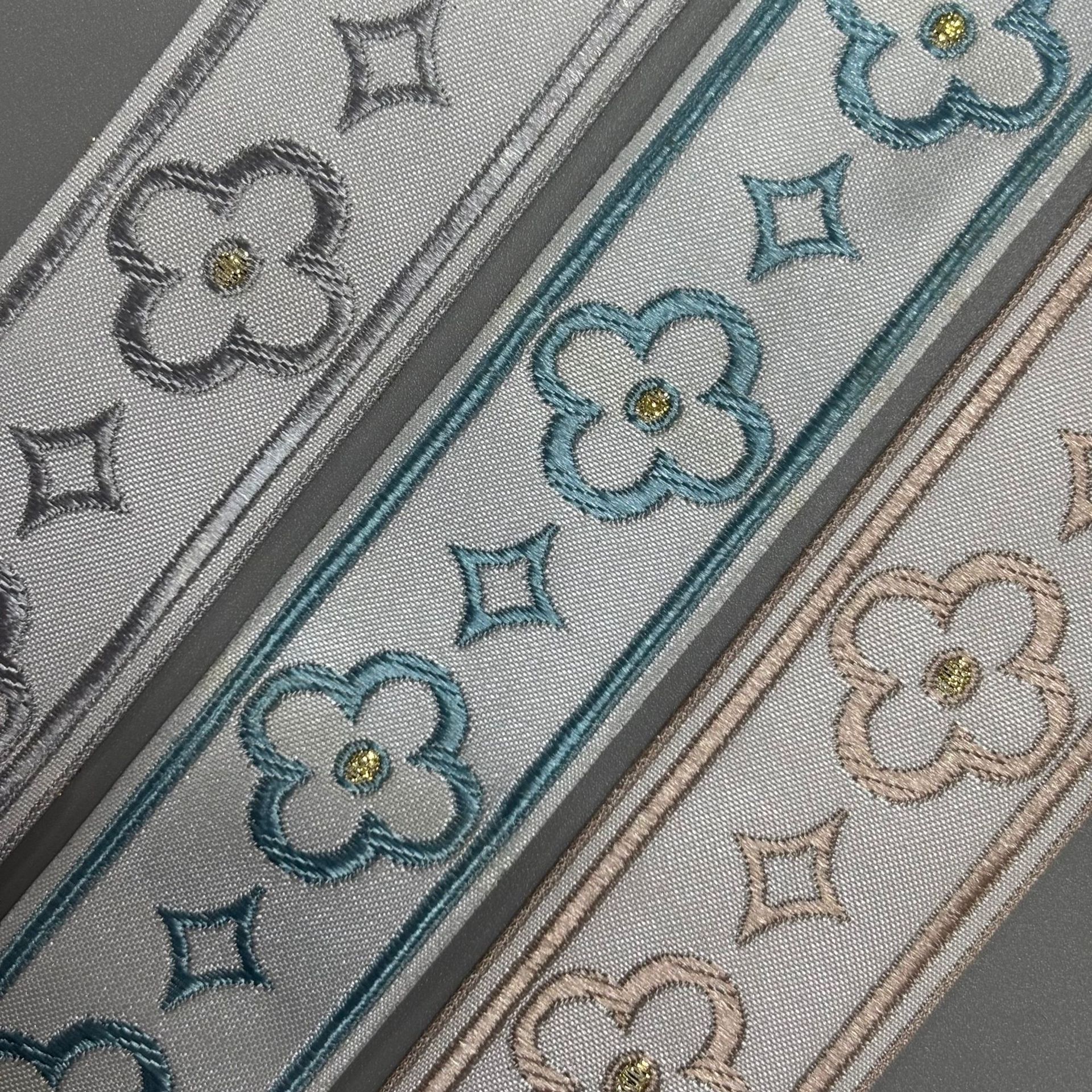 新作多色光沢シルク子母帯縁飾り、漢服衣装用縁飾り、花柄縁飾り、衣料品用アクセサリー