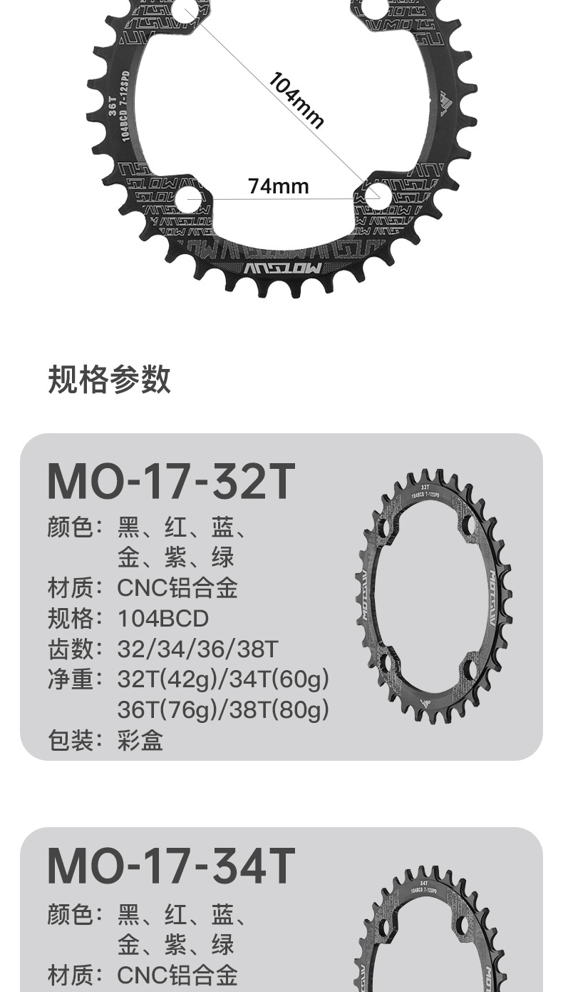 Motsuvマウンテンバイク104bcd歯盤正負歯盤32t34t36t38t単速丸楕円ディスク