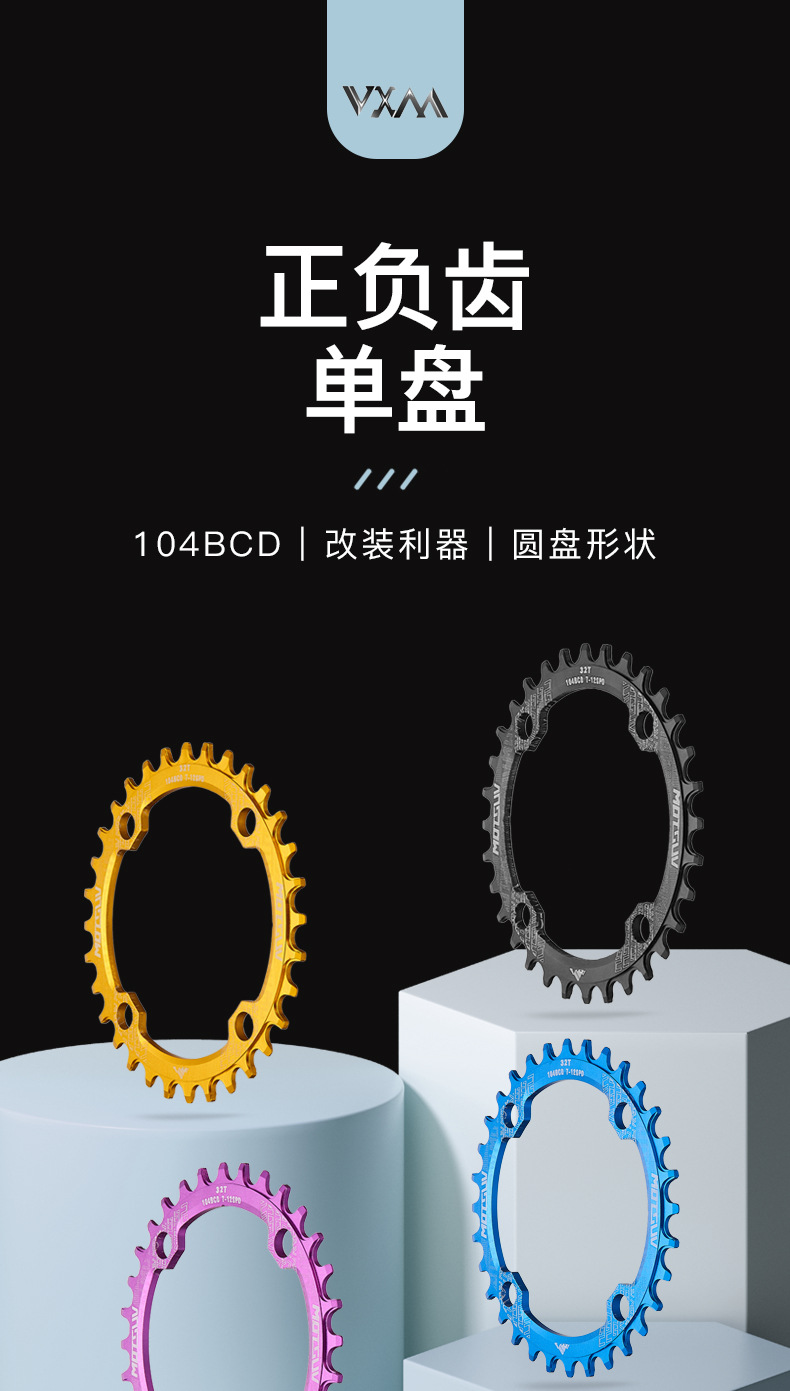 VXMマウンテンバイク正負歯単盤単速歯盤104BCD 32T34 36T 38T40T42歯片ディスク