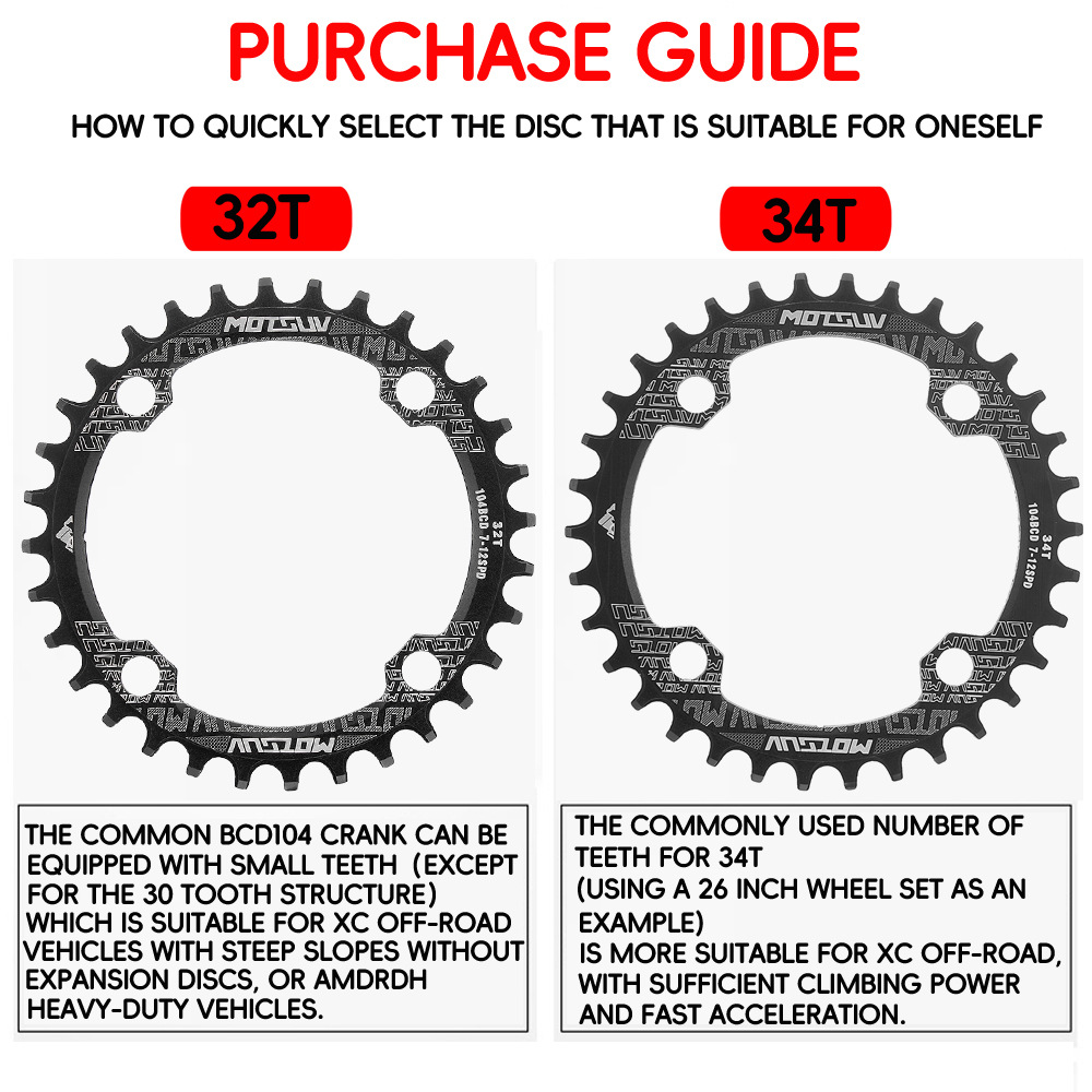 Motsuvマウンテンバイクスプロケット単速正と負の歯のディスク104bcd単盤32t34t36t歯盤