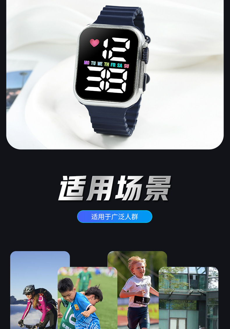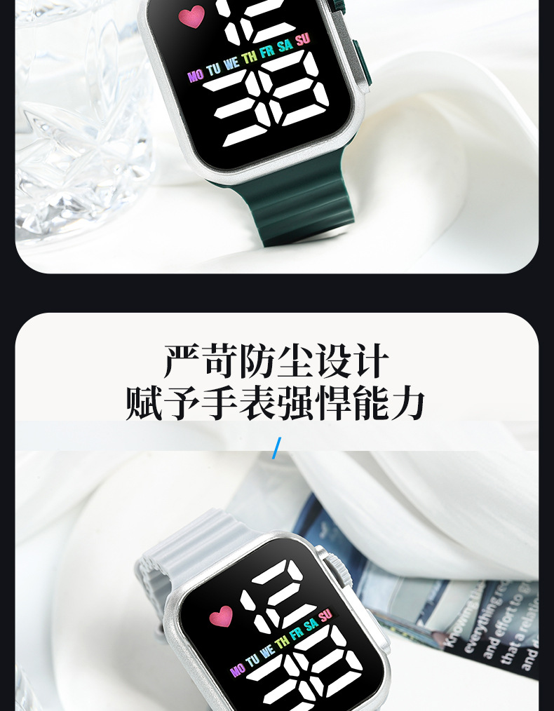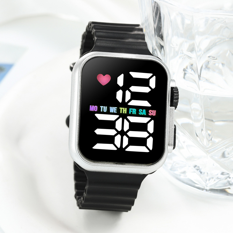 高颜値学生党虹角形led電子時計ファッション愛モデルデジタルスポーツ防水電子腕時計
