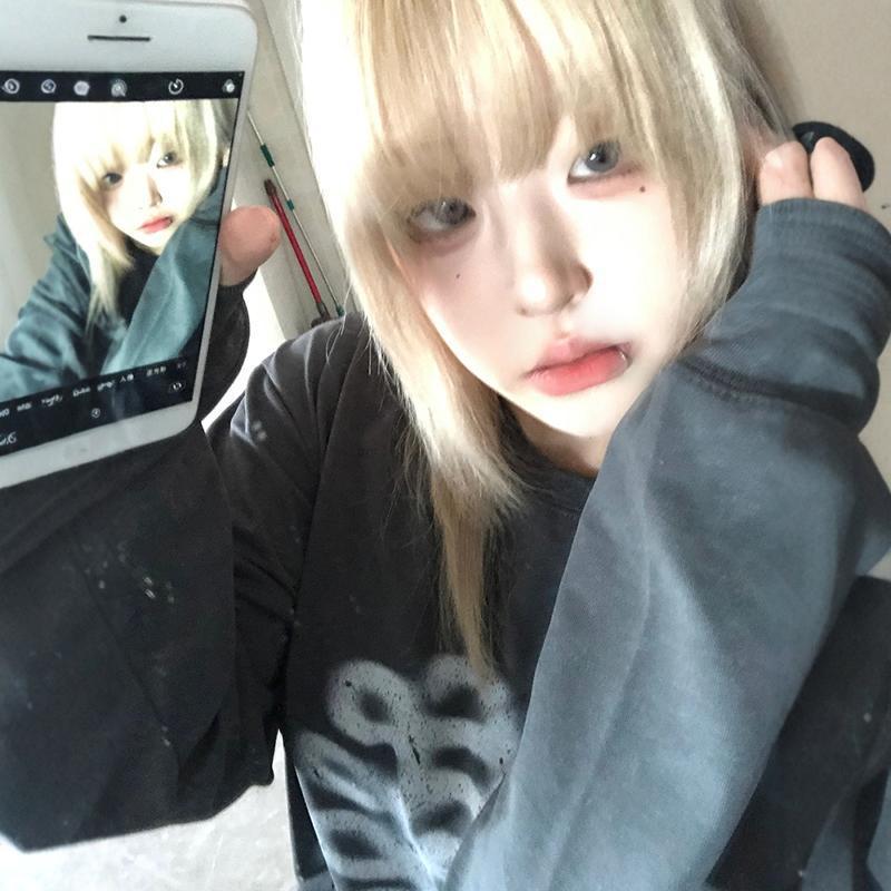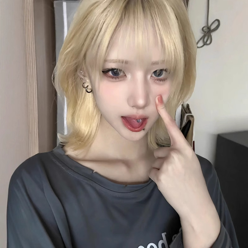 かつら女性ゴールデン新しい鎖骨毛 y2k インターネット有名人サブカルチャー前髪高層ショートストレートヘアフルヘッドギア