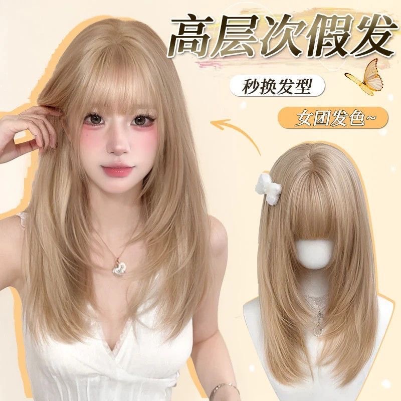 【布蕾奶茶】假发女古早刘海亚麻奶茶金高层次中长发自然全头套式