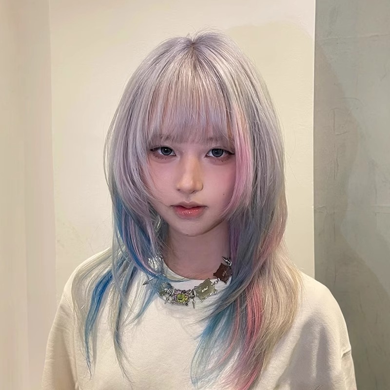 かつら男女同モデル高層次感クラゲ頭長髪日系狼尾魚頭全頭カバー式万用cos