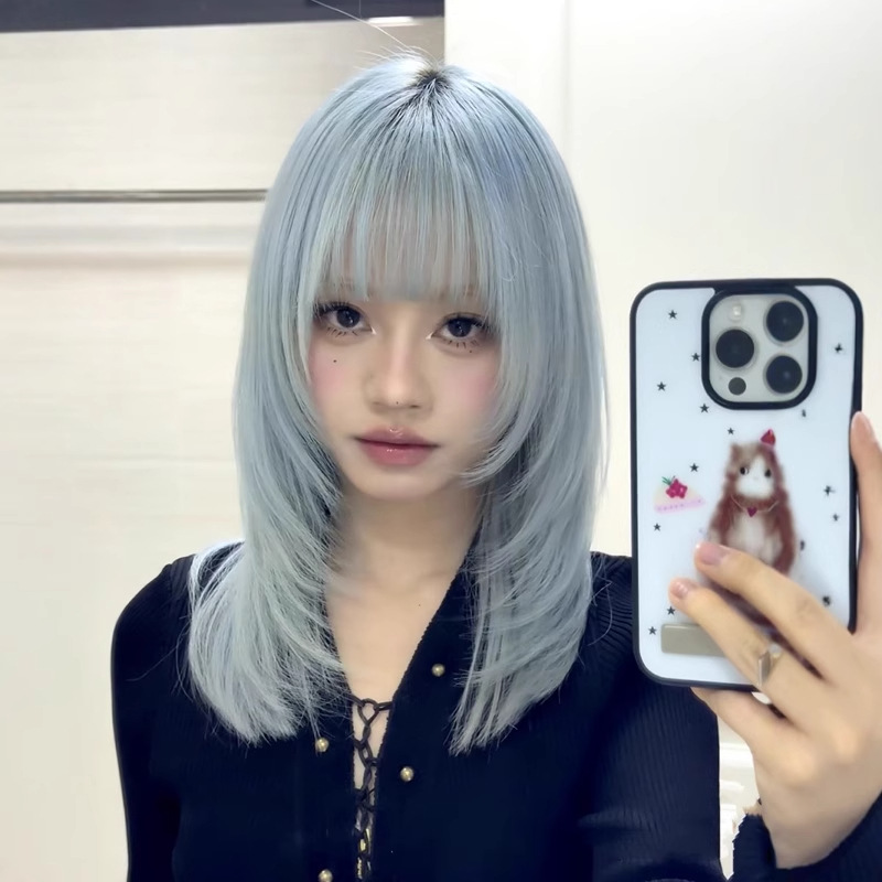 かつらの女性の氷の青い自然の鎖骨はy2kネットの紅亜の文化の斉前髪の高レベルの短いストレートの全頭カバーを出します。
