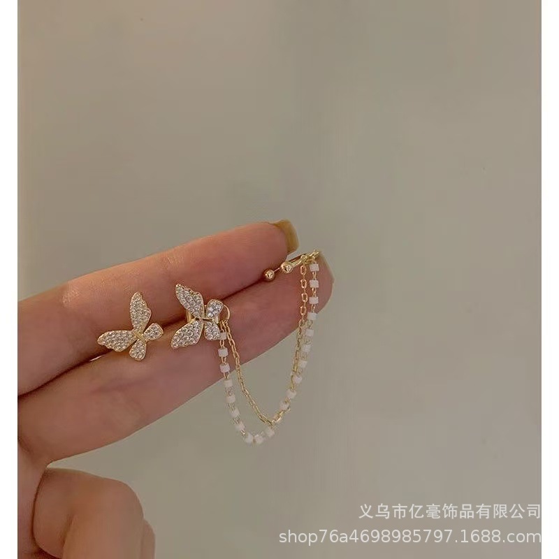 日韓の精巧で小さくて、いっぱいのドリルの蝶のピアスinsの気質の百合のイヤリングのフランスの高品質の耳飾りの925銀の針