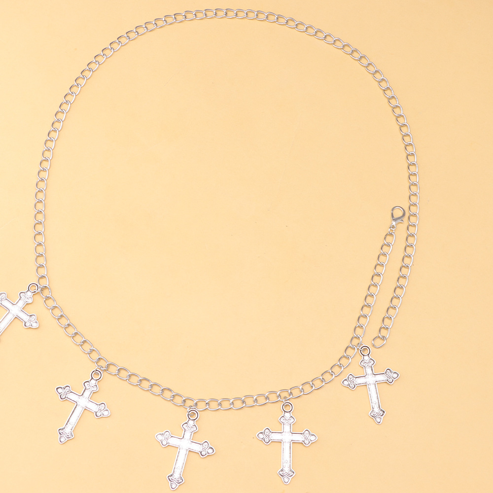 Ins欧米のアクセサリーのパンクヒップホップの二重ズボンのチェーンの個性的な街頭の潮流の透かし彫りの十字の部品の腰のチェーン
