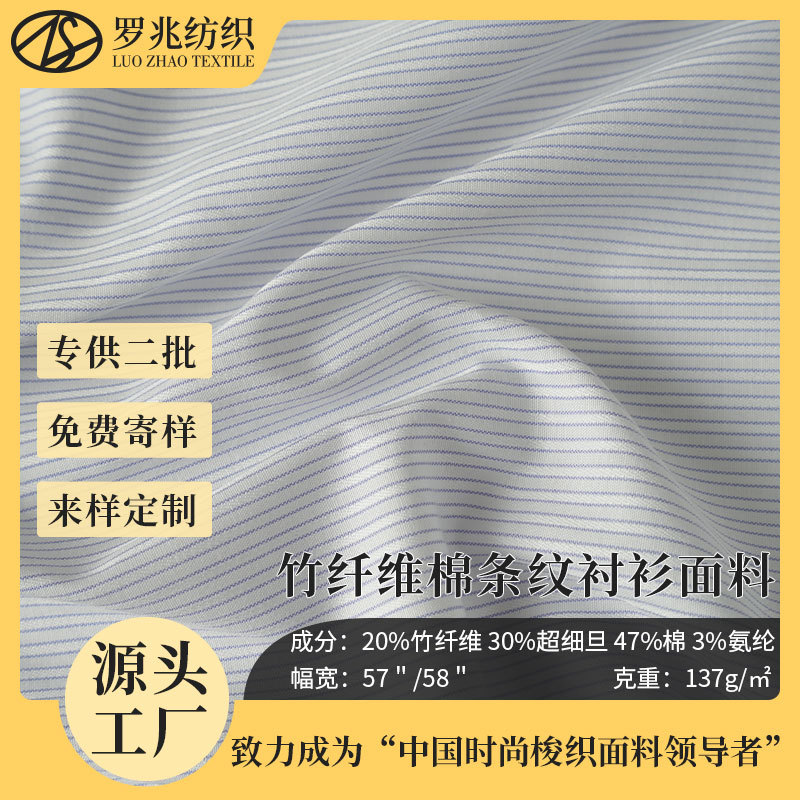 高級竹繊維シャツ生地垂感ツイル弾力ズボン生地竹繊維綿ストライプシャツ生地