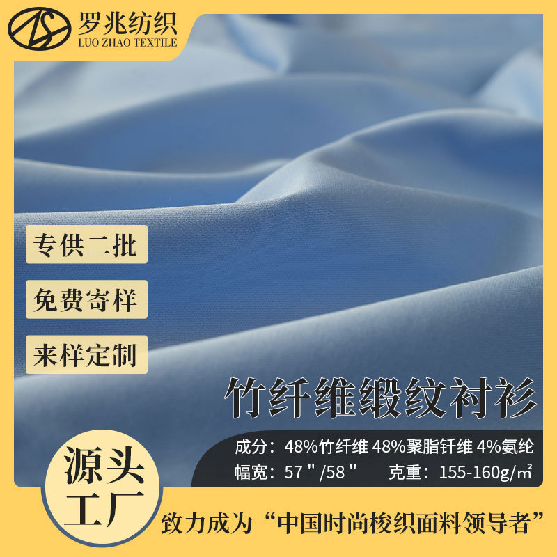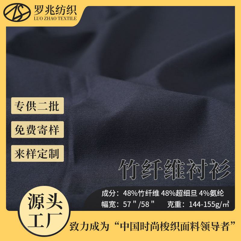 竹繊維弾力綾織りファッションカジュアル男性女装半袖蘭精モーデール綾織りシャツ生地現物