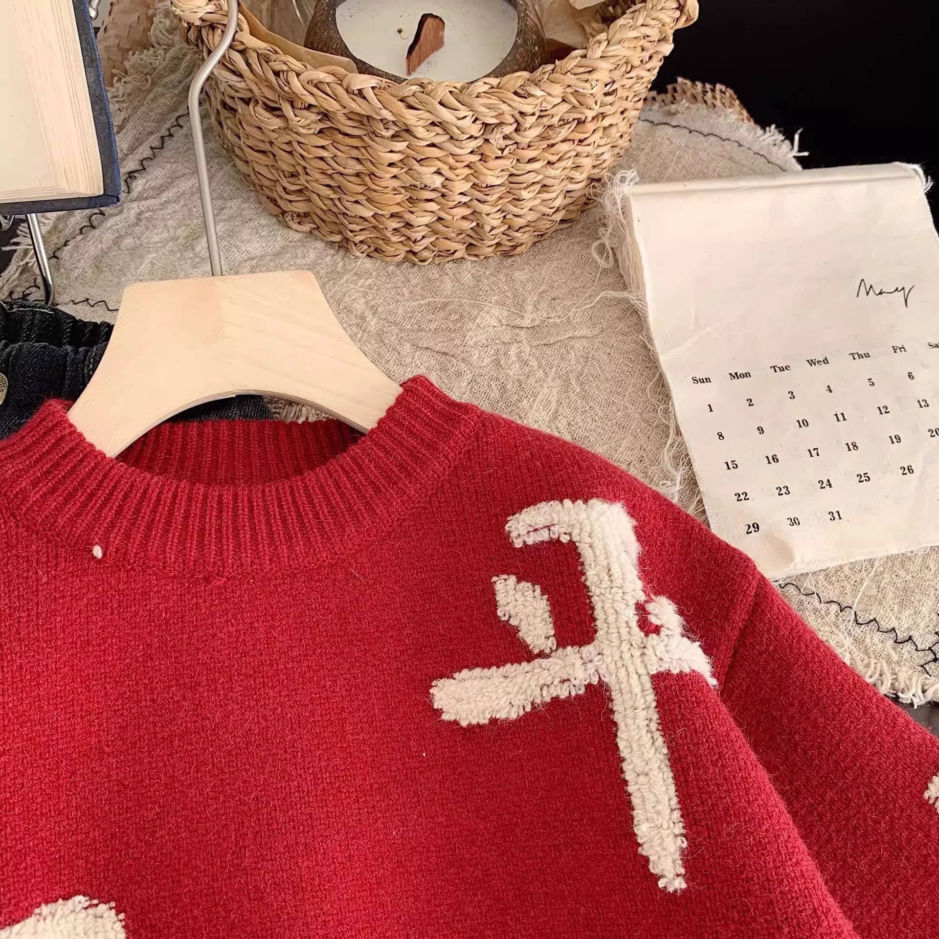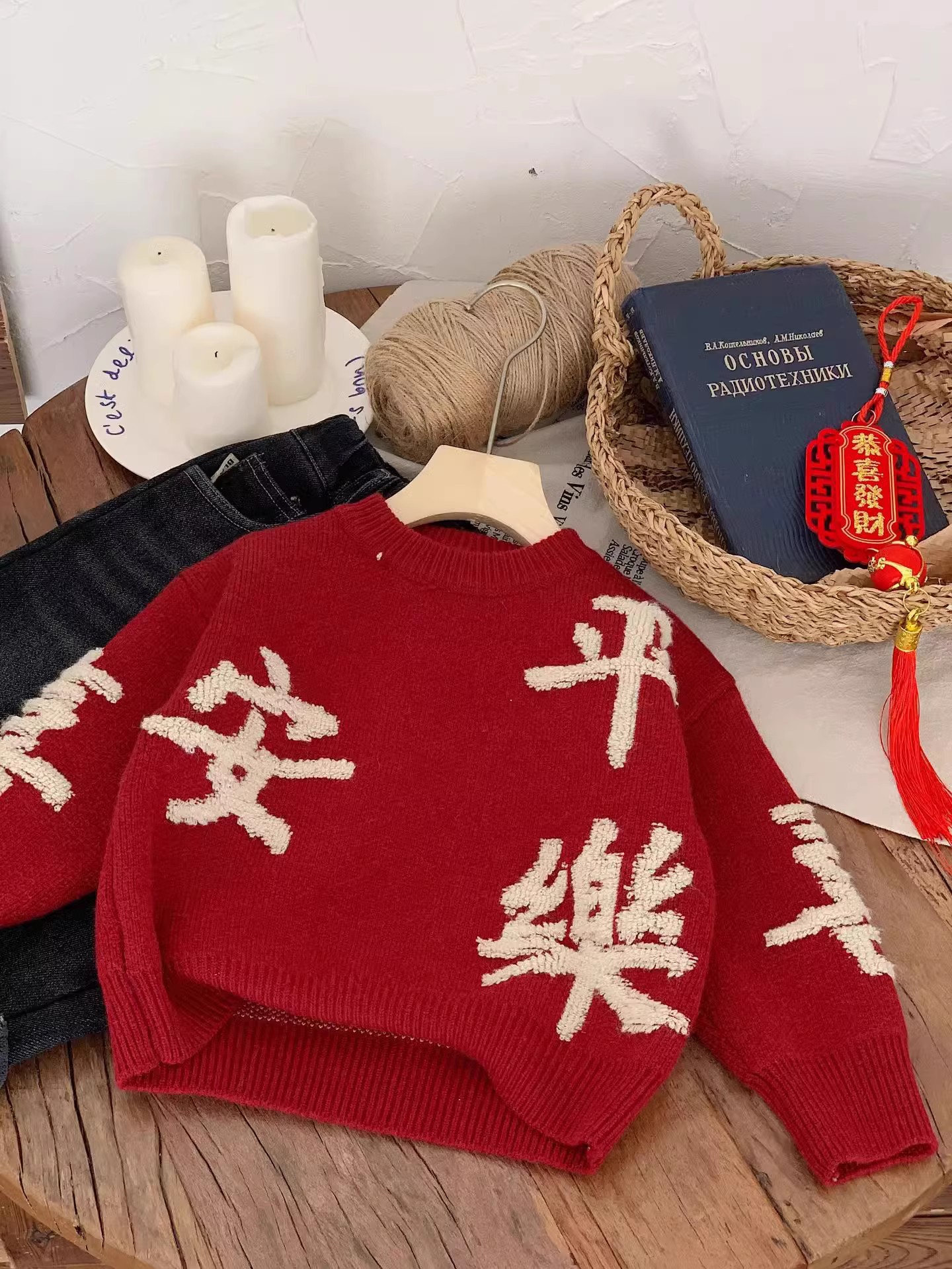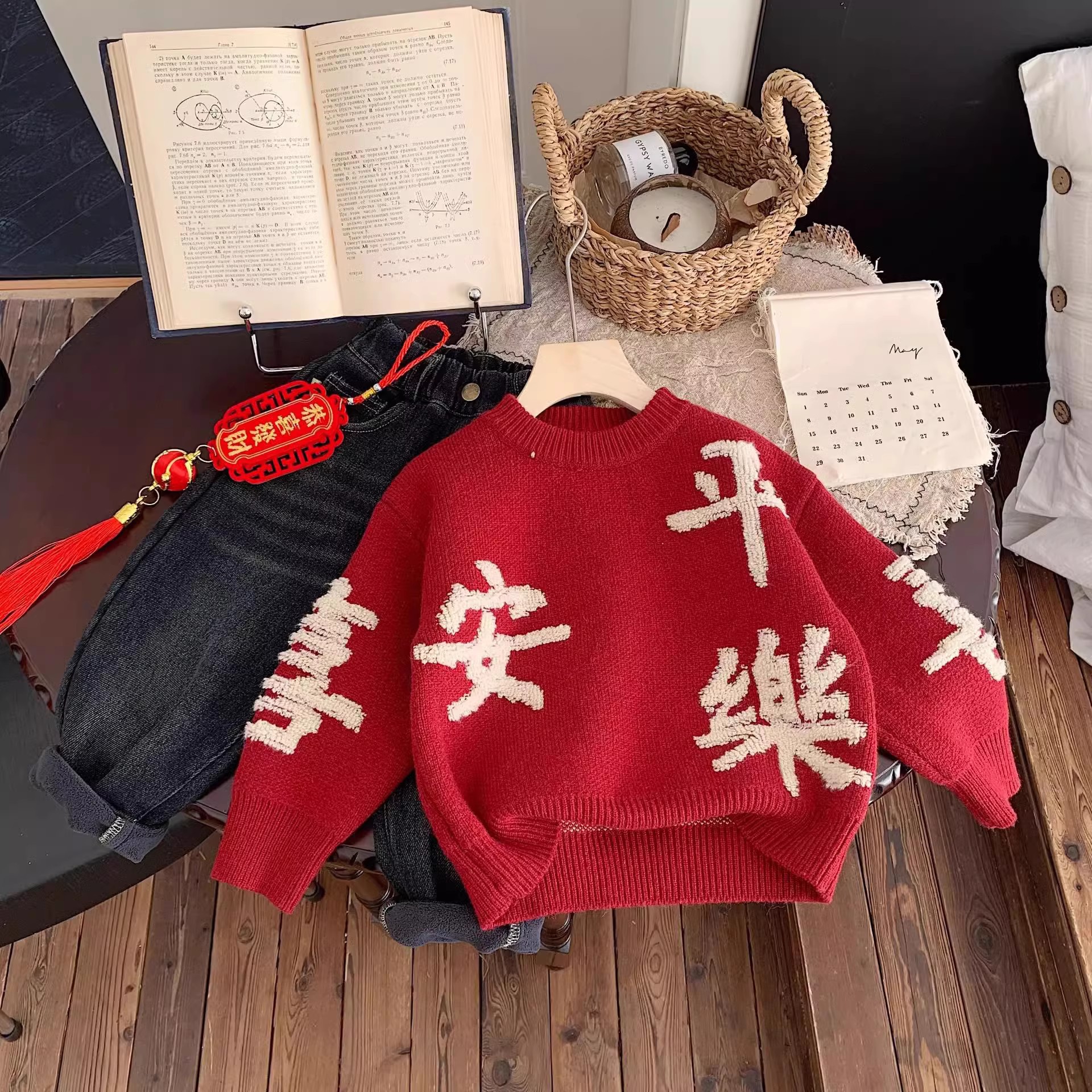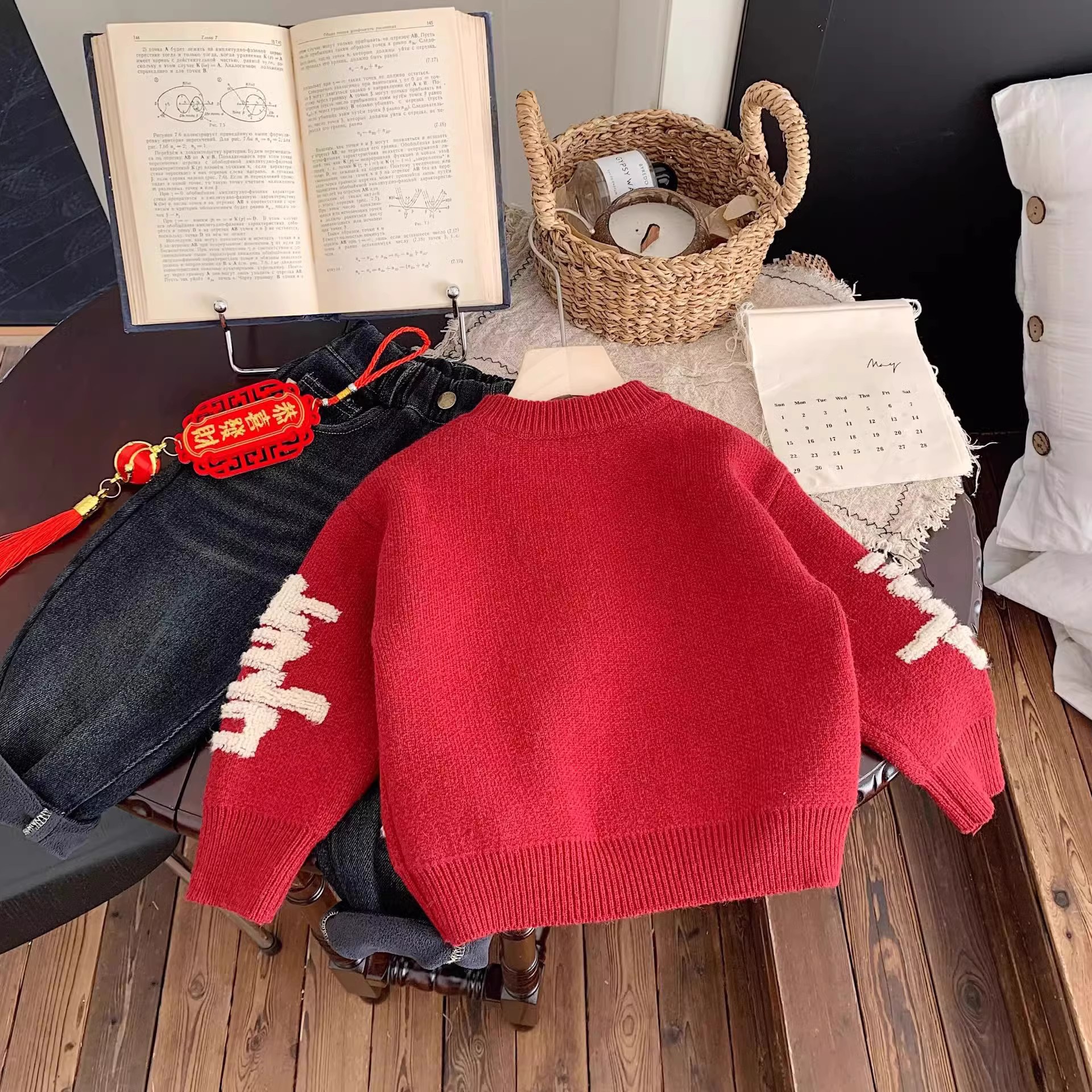 童星源子供用セーター2025冬新年お祝い服男の子女の子暖かいニットセータートップスインナー