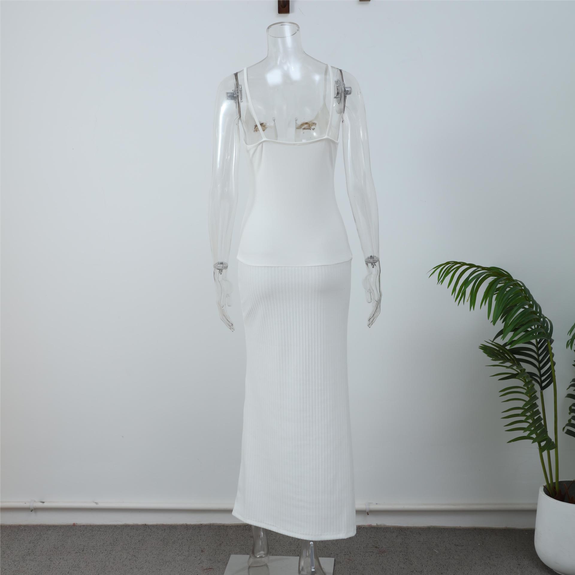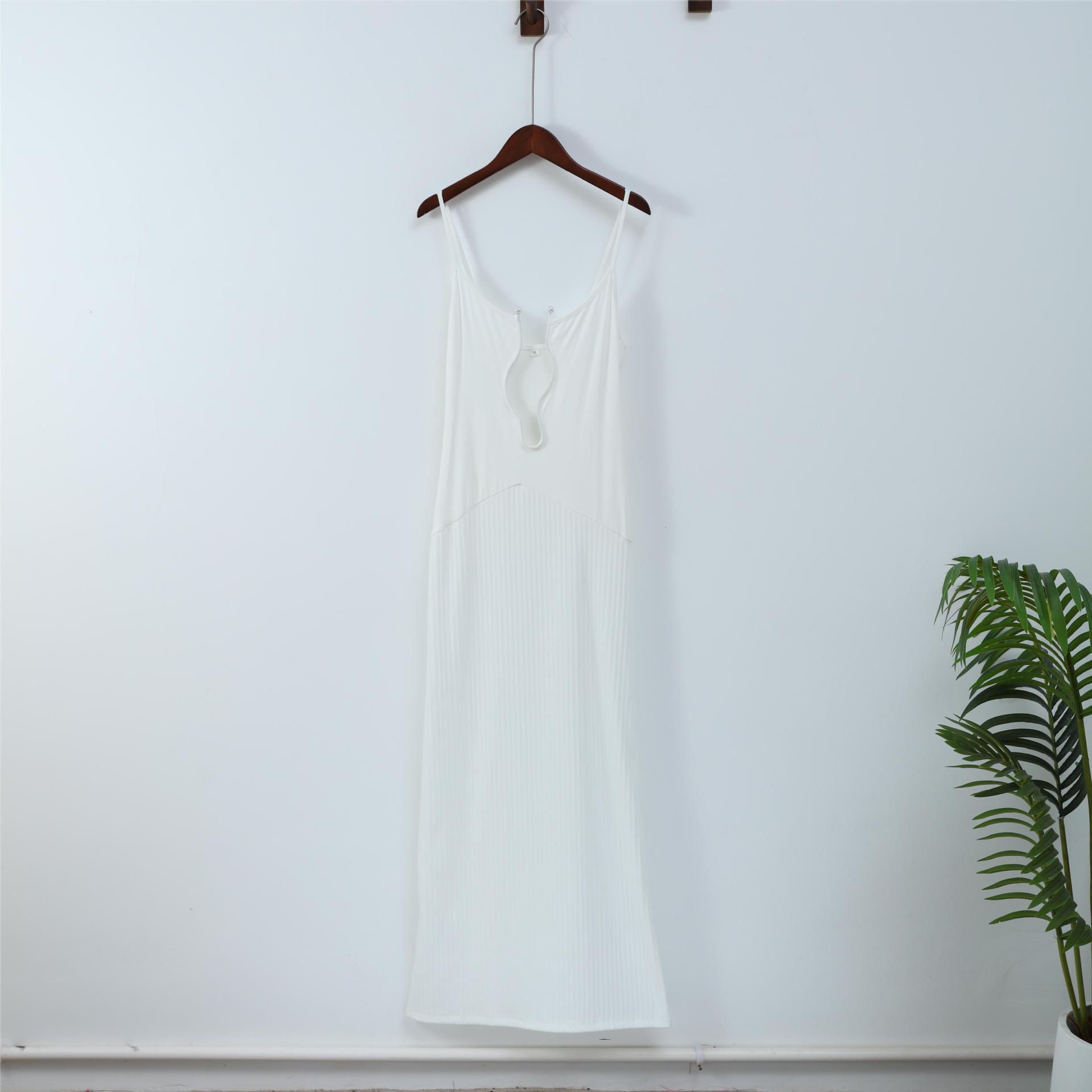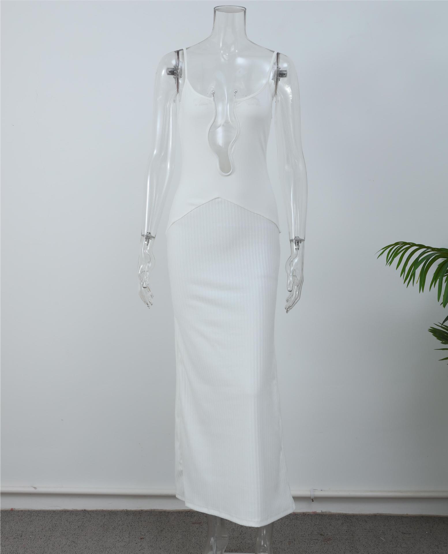 欧米の越境波の不規則なストラップのワンピースのファッション的なセクシーな純色の肩の高い腰の休暇の長いスカート