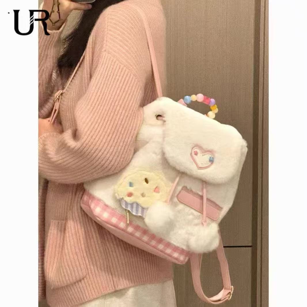 外贸新款秋冬毛绒包女甜美少女毛茸茸双肩包可爱百搭甜美学生书包