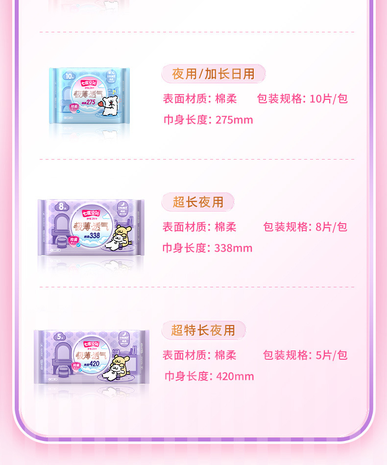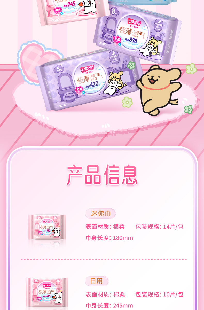 七度空間QSD8110生理用ナプキン少女シリーズ極薄通気綿ソフト日用245mm10枚入