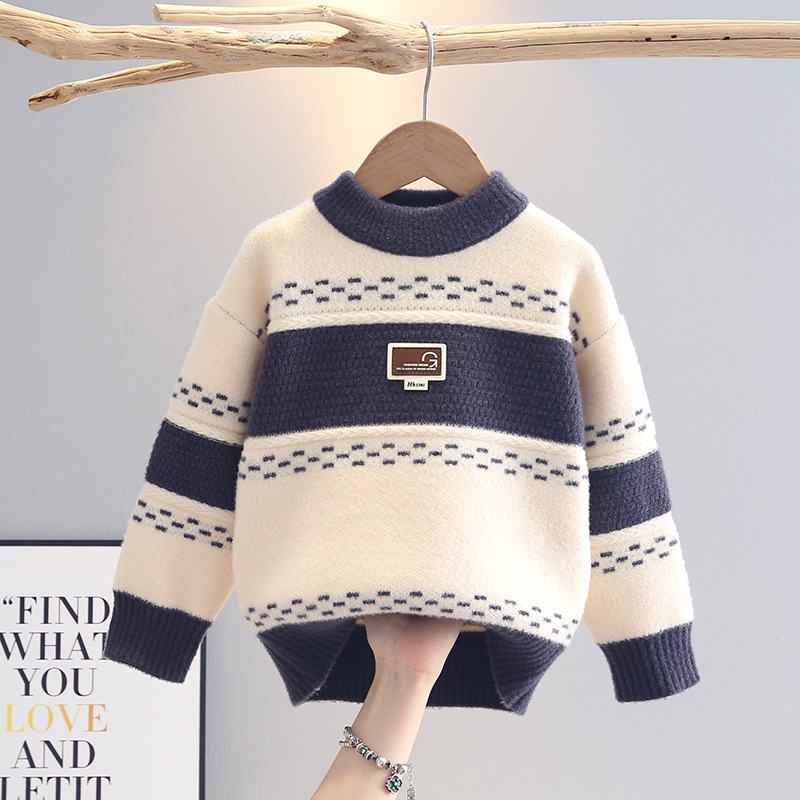 男童条纹毛衣秋冬季2025新款加厚毛线衣中大童帅气秋冬针织衫上衣