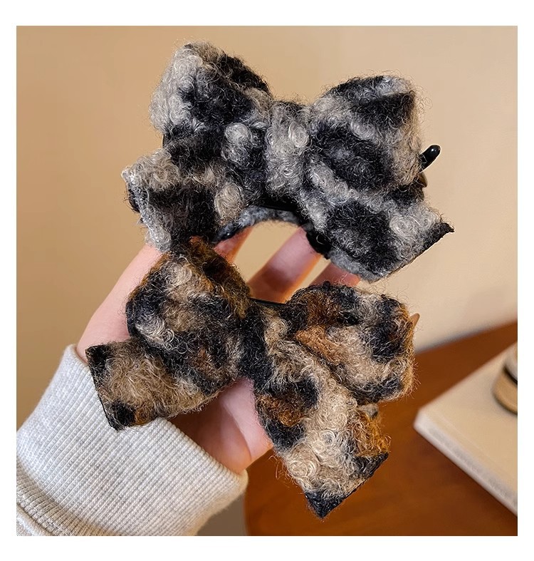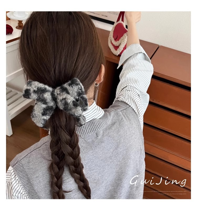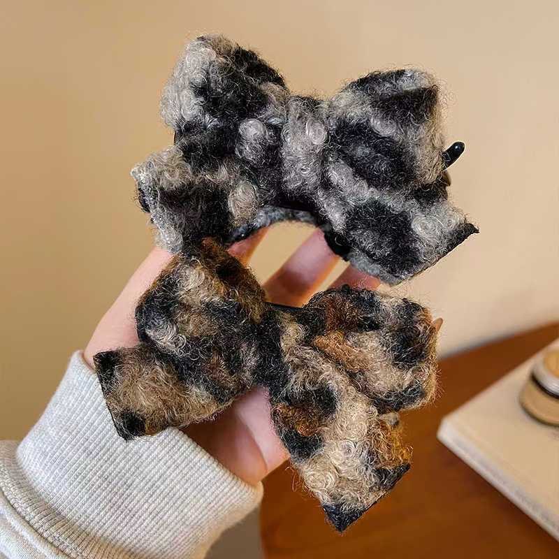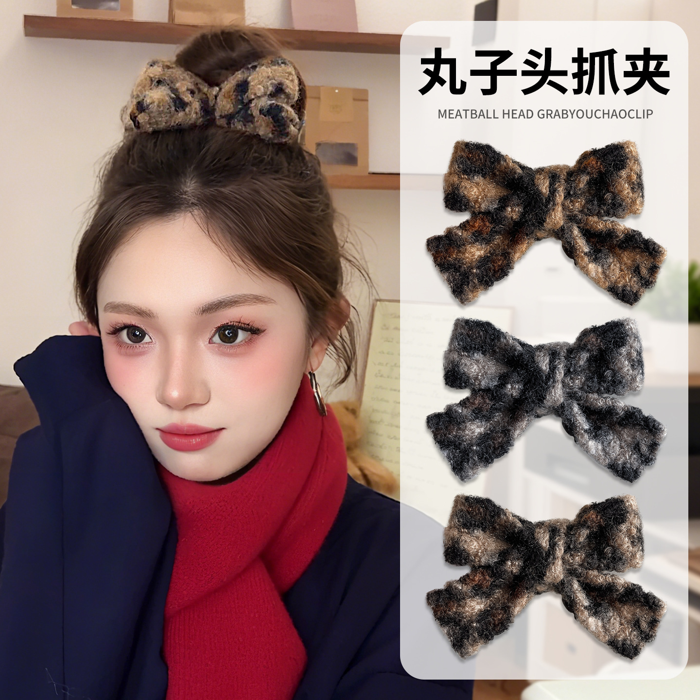 韩系豹纹蝴蝶结抓夹女秋冬毛绒高马尾发夹丸子头毛毛夹子发卡头饰
