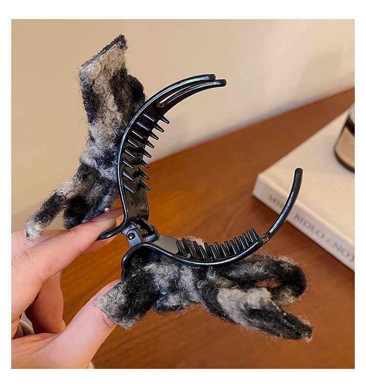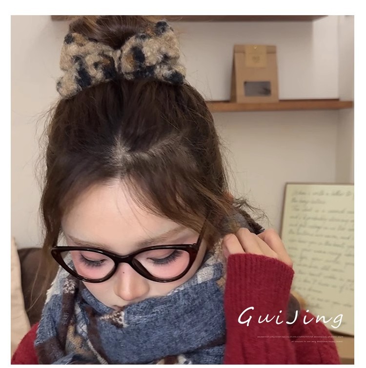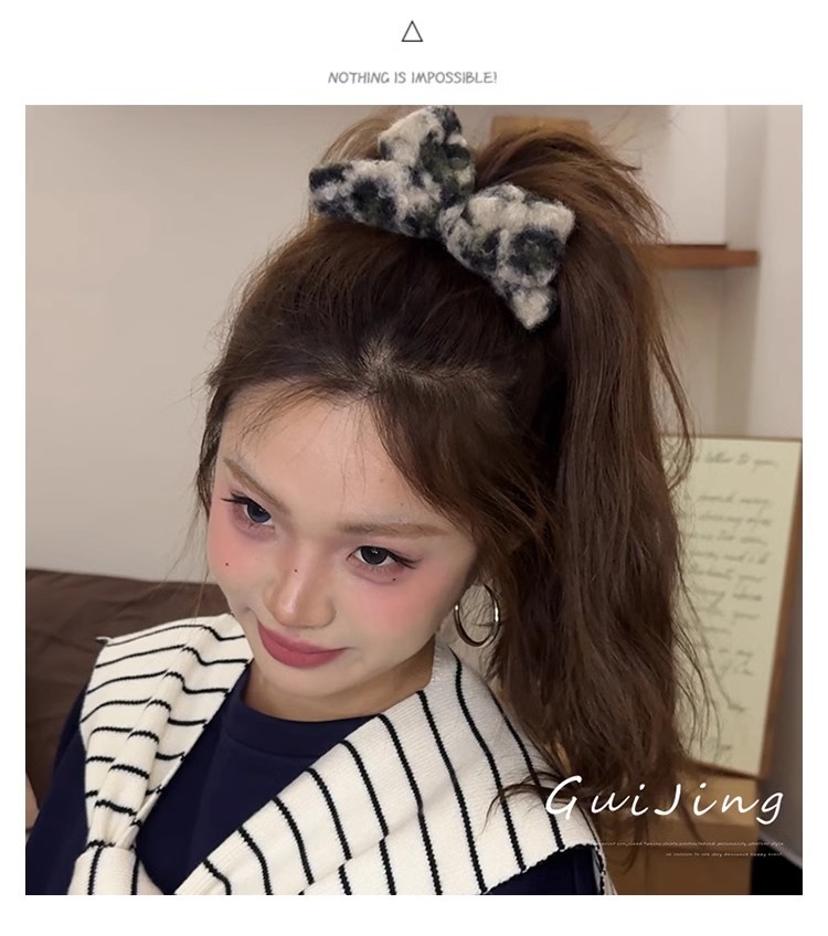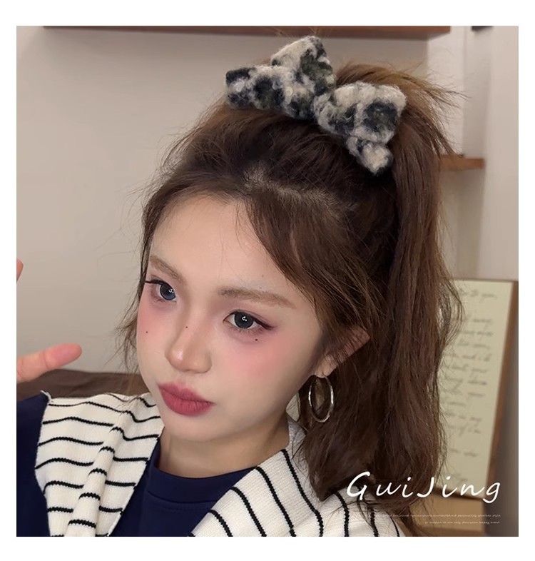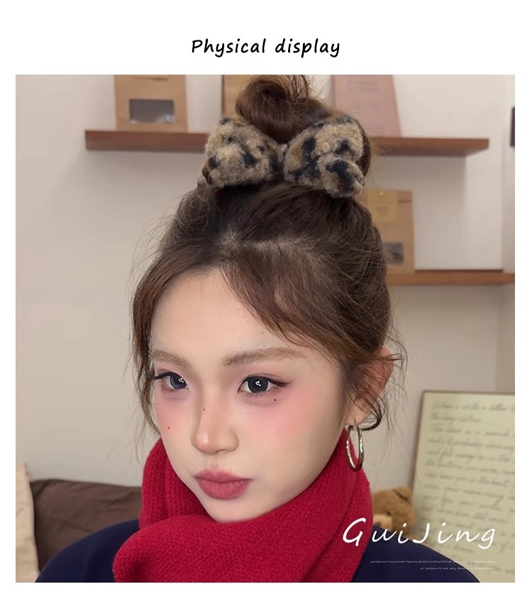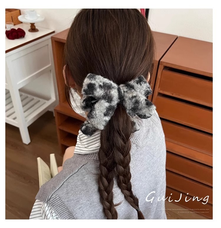 韩系豹纹蝴蝶结抓夹女秋冬毛绒高马尾发夹丸子头毛毛夹子发卡头饰