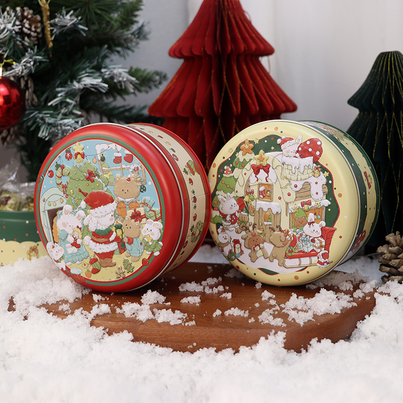 新品クリスマス135レリーフトランペット丸缶クッキーお菓子キャンディー包装箱ギフト包装ブリキ