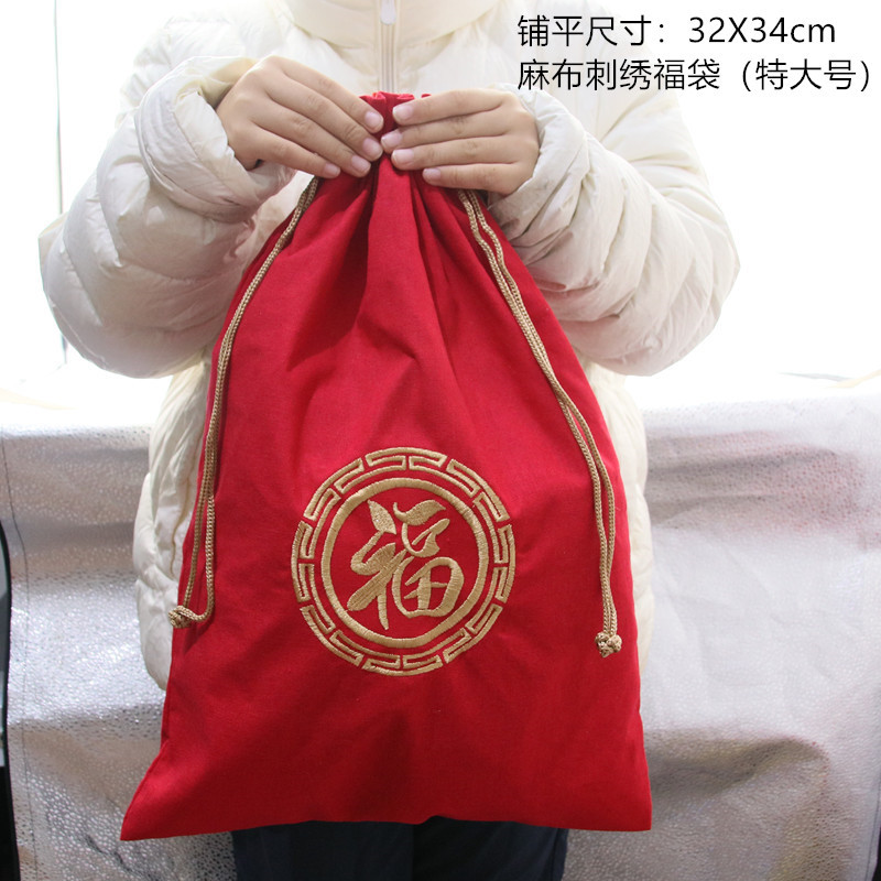 特大麻布刺繍福袋新年プレゼント包装ポケット文游手串アクセサリー錦嚢収納袋
