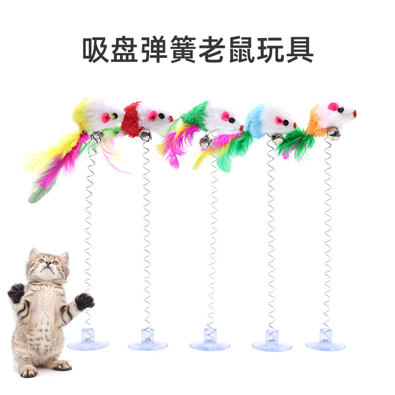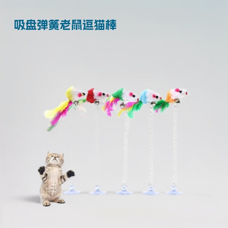 メーカー卸売り猫玩具吸盤スプリングネズミ逗猫棒吸盤羽鈴吸着式玩具現物