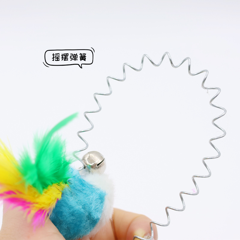 スプリングの羽が猫の棒をからかっています。猫のおもちゃは自ハイです。