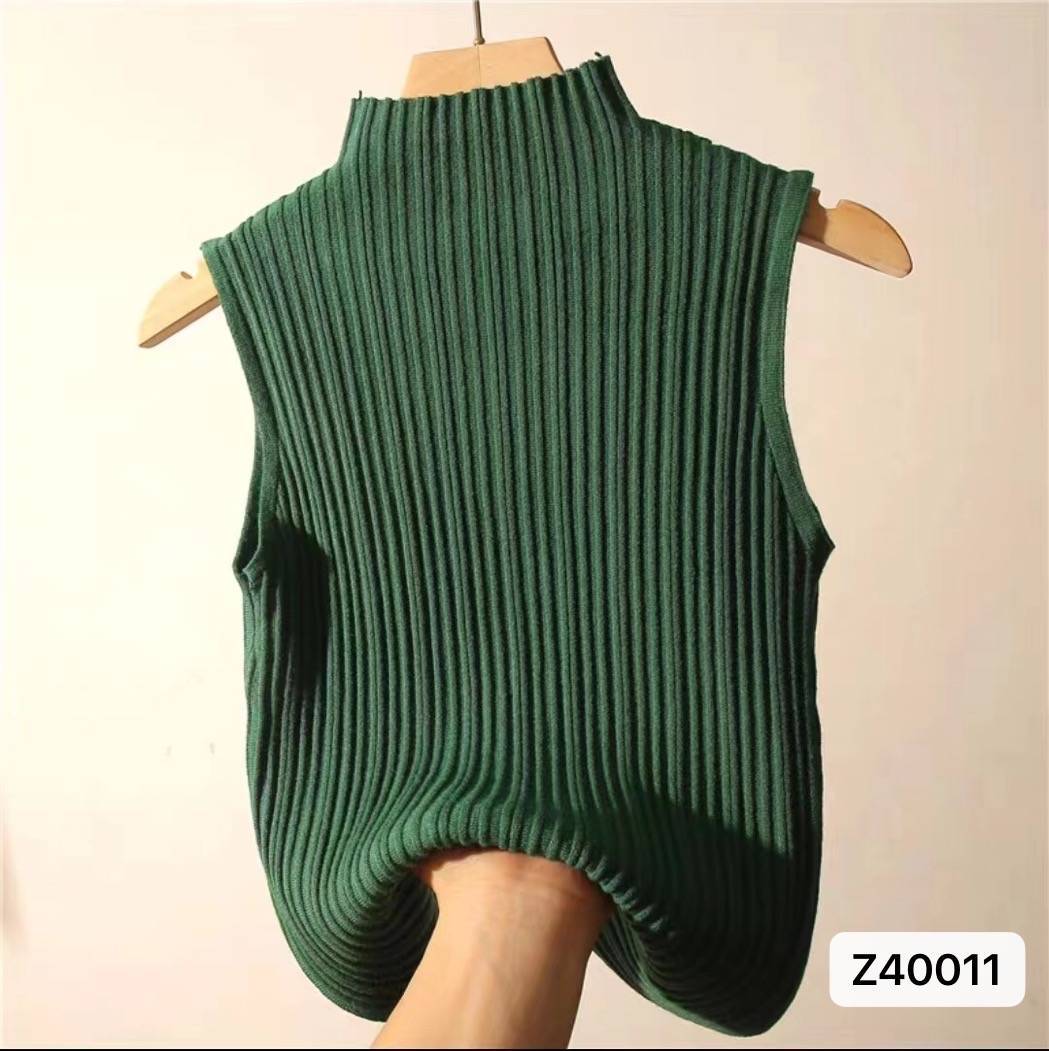 ニットのベストの女性の夏と春の新商品の洋気のカンカンの短いタイプの半高襟の坑条の袖なしの外は底のシャツを着ます。