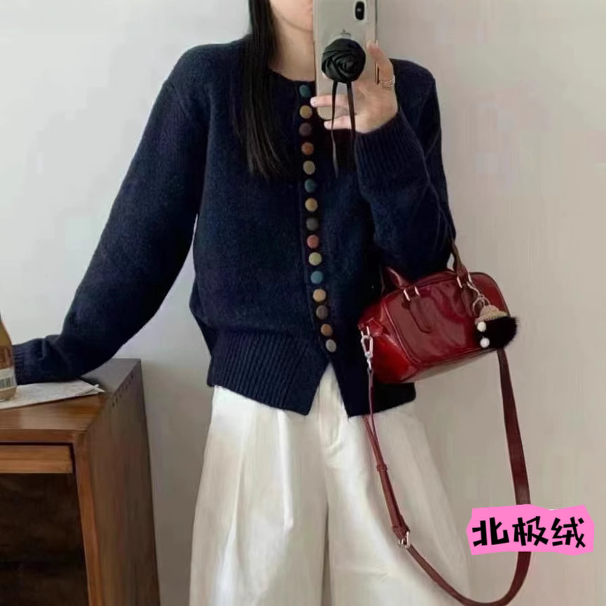 ストリートセーター長袖秋デザインニッチショートスタイルレトロ気質ニットカーディガン万能トップ