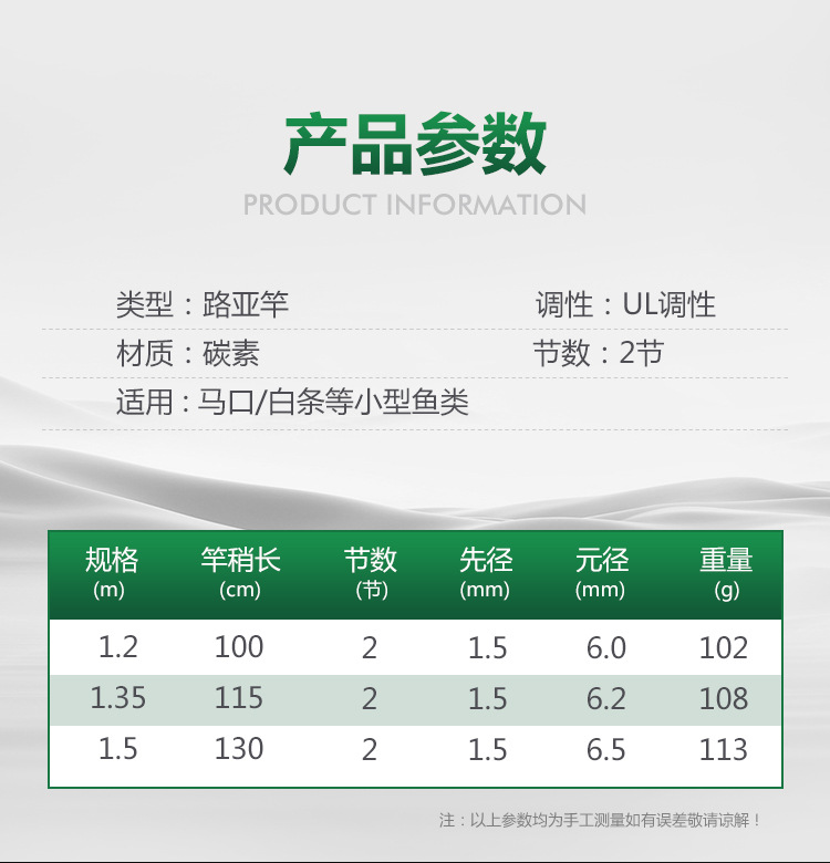 长度 枪柄红1.2米,直柄红1.2米,枪柄红1.35米,直柄红1.3.5米,直柄红1.5米,枪柄红1.5米,枪柄绿1.2米,直柄绿1.2米,枪柄绿1.35米,直柄绿1.35米,枪柄绿1.5米,直柄绿1.5米,枪柄红1.2米+轮+线+鱼饵,直柄红1.2米+轮+线+鱼饵,枪柄红1.35米+轮+线+鱼饵,直柄红1.3.5米+轮+线+鱼饵,直柄红1.5米+轮+线+鱼饵,枪柄红1.5米+轮+线+鱼饵,枪柄绿1.2米+轮+线+鱼饵,直柄绿1.2米+轮+线+鱼饵,枪柄绿1.35米+轮+线+鱼饵,直柄绿1.35米+轮+线+鱼饵,枪柄绿1.5米+轮+线+鱼饵,直柄绿1.5米+轮+线+鱼饵