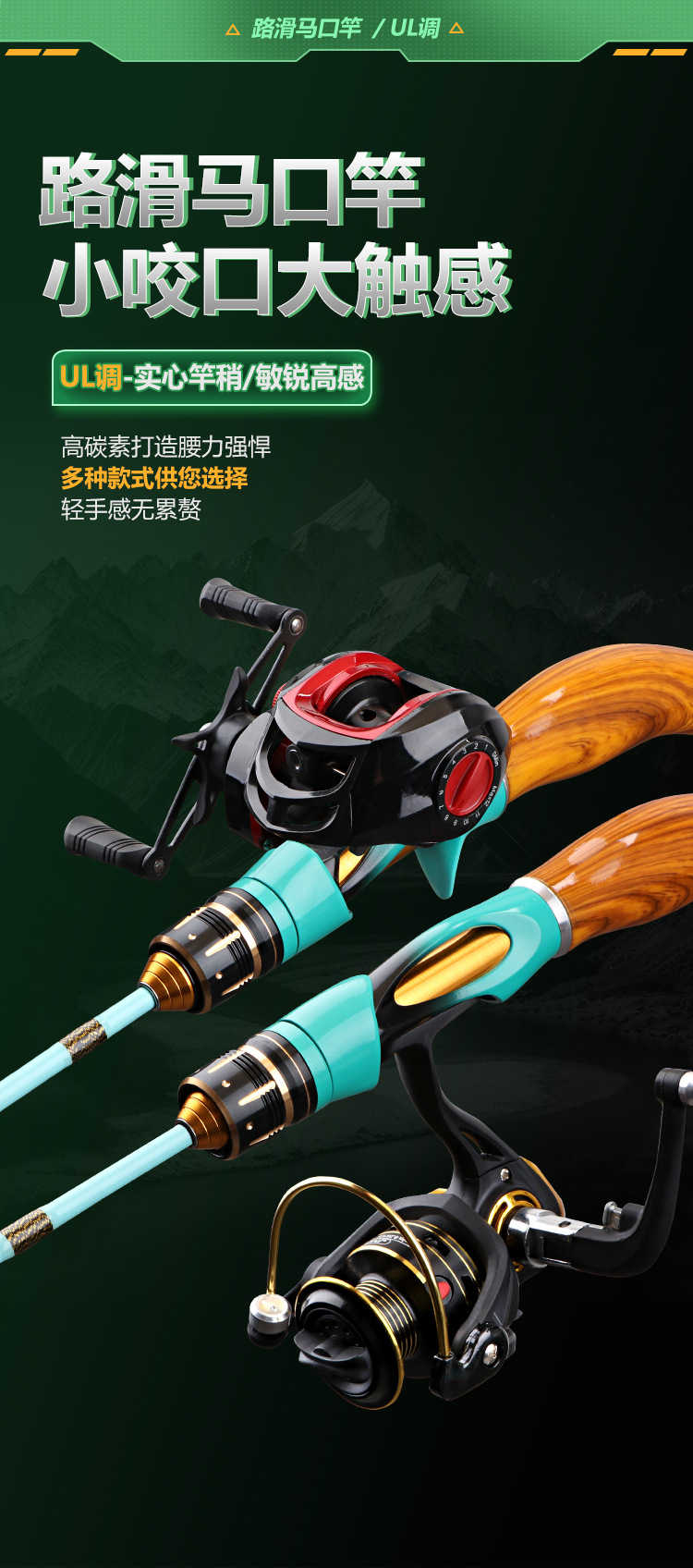 厂家销售素实木马口路 亚 竿超软UL调鱼竿全套装水滴轮溪流钓渔杆