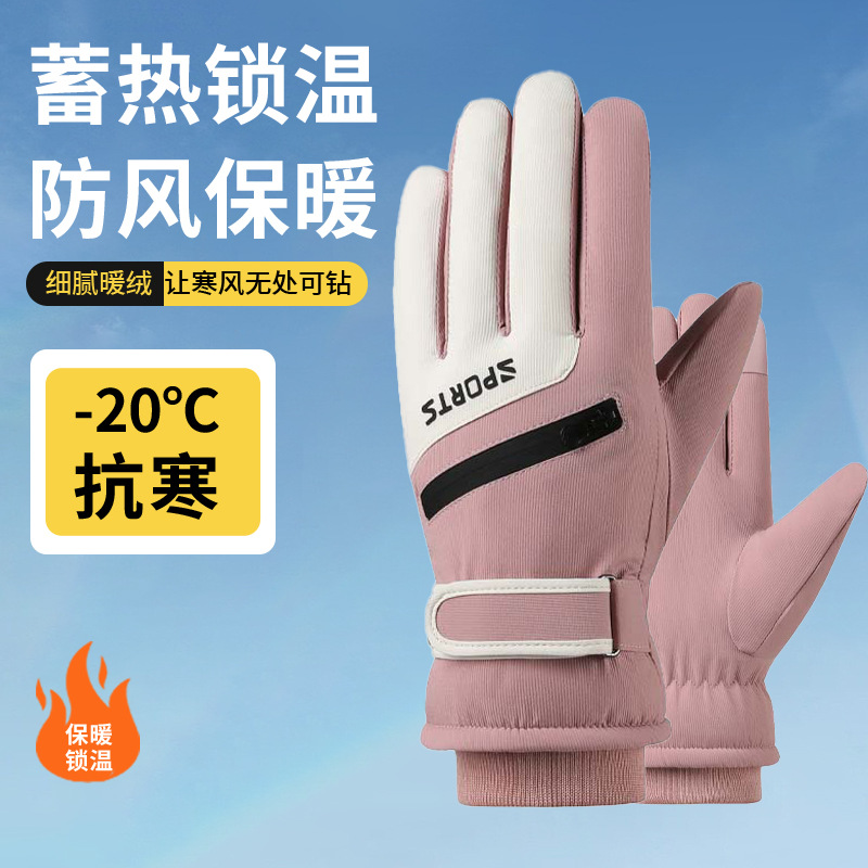 冬季防寒户外保暖手套女款防泼水防滑可触屏加绒加厚骑行滑雪手套