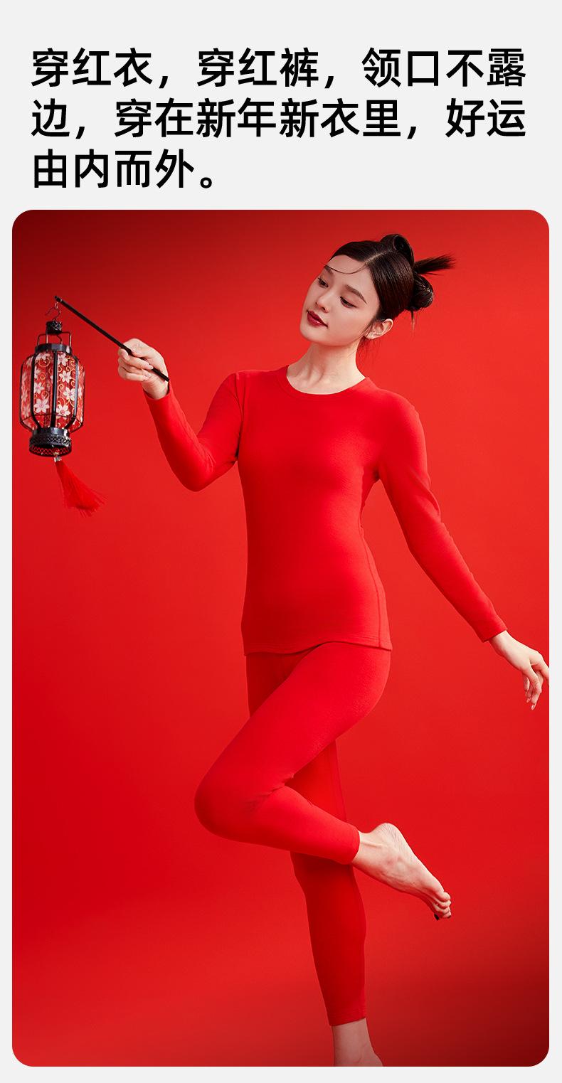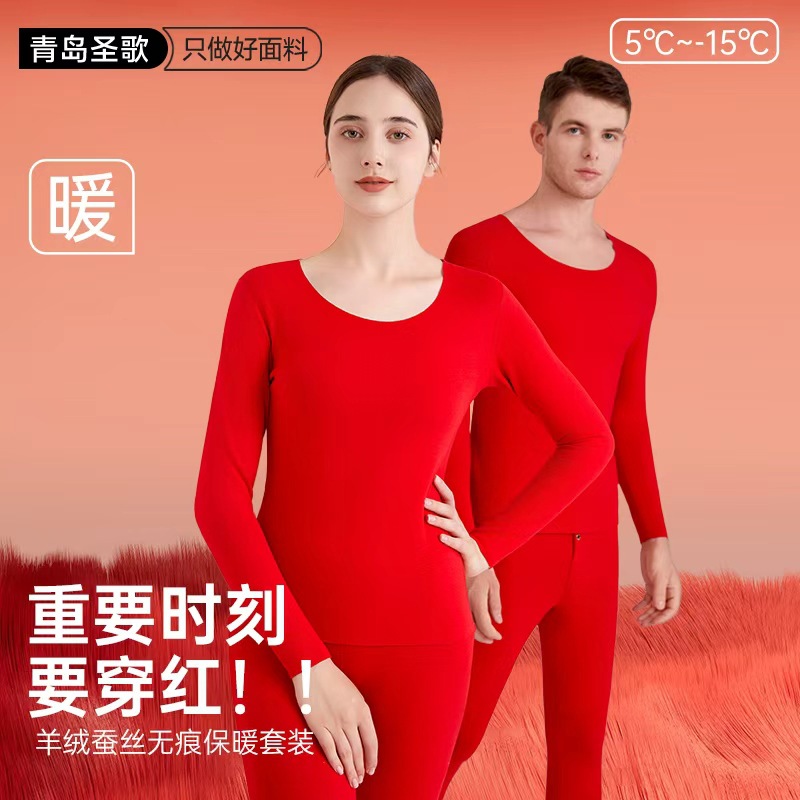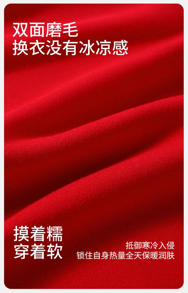 本命年大紅徳絨毛保温スーツ女性カシミヤシルク無痕発熱加毛カップル秋衣秋ズボン