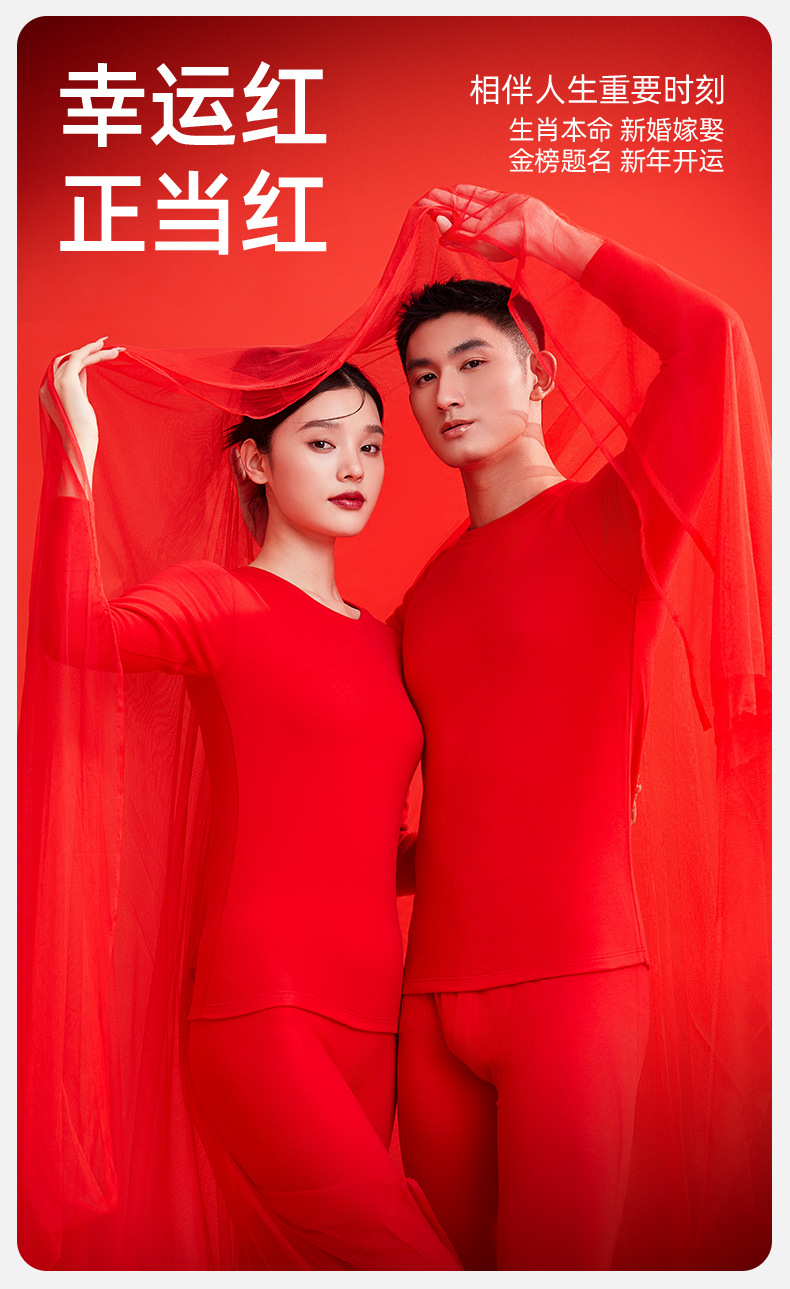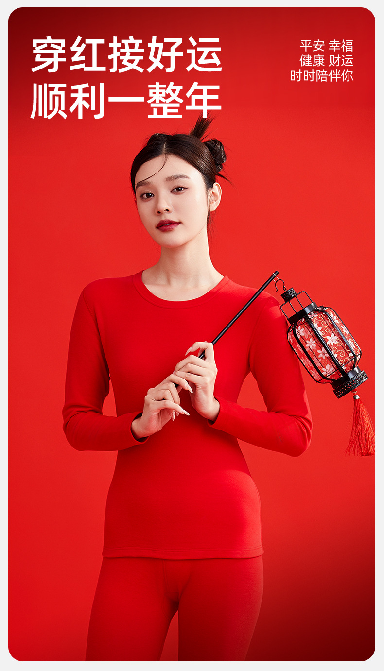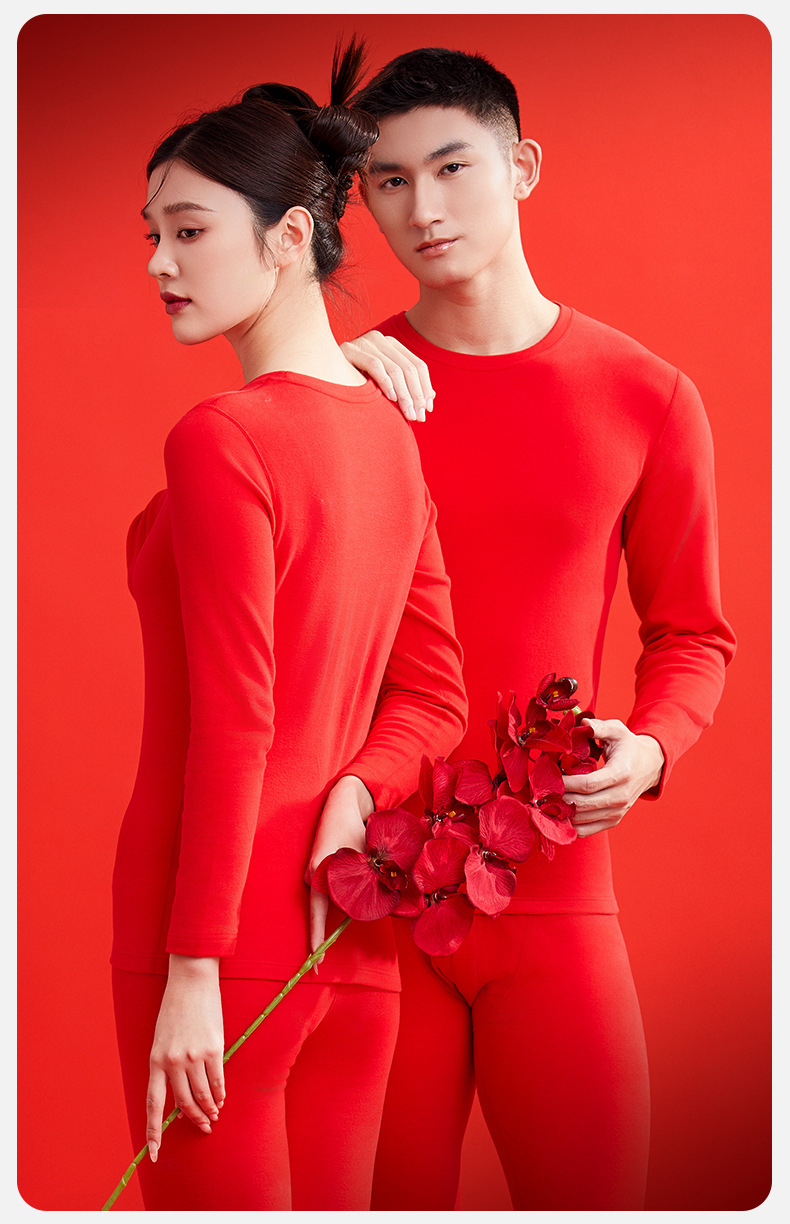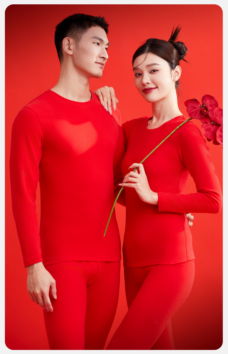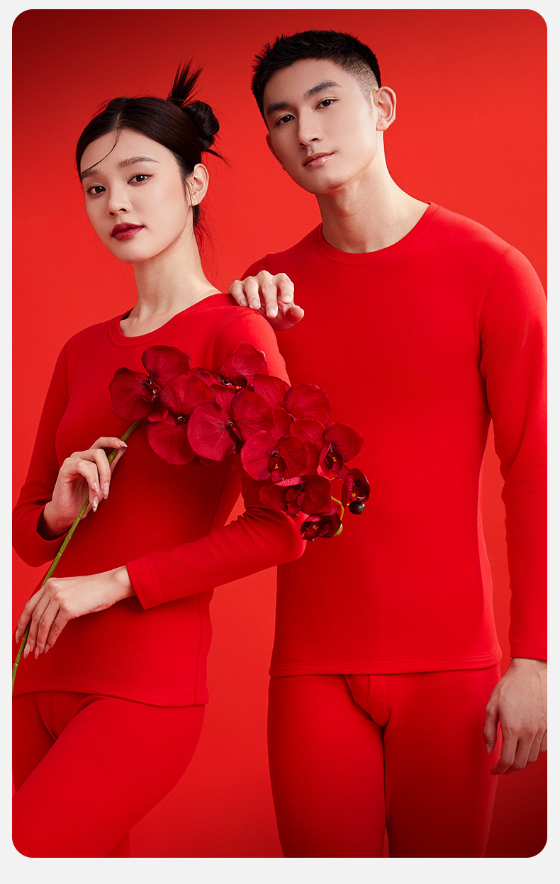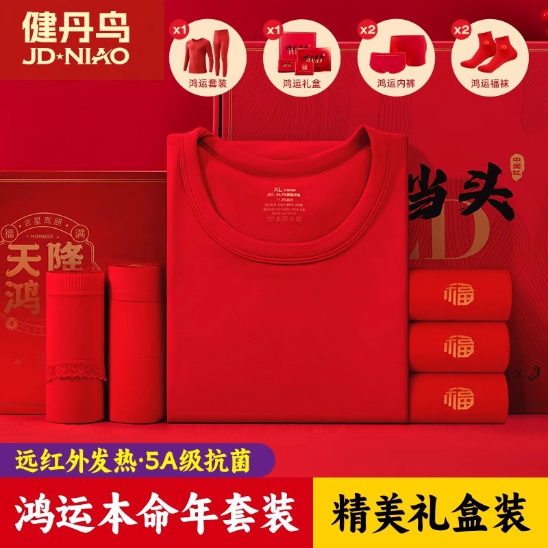 本命年大赤色純綿下着鴻運秋衣秋ズボン男性女性結婚保温ギフトセット