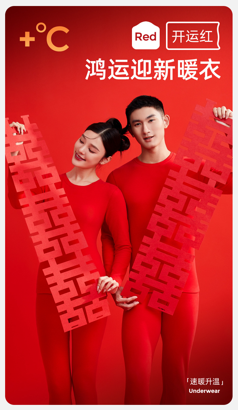 属马本命年保暖内衣内裤袜男女款加绒新婚红色秋衣秋裤礼盒套装冬