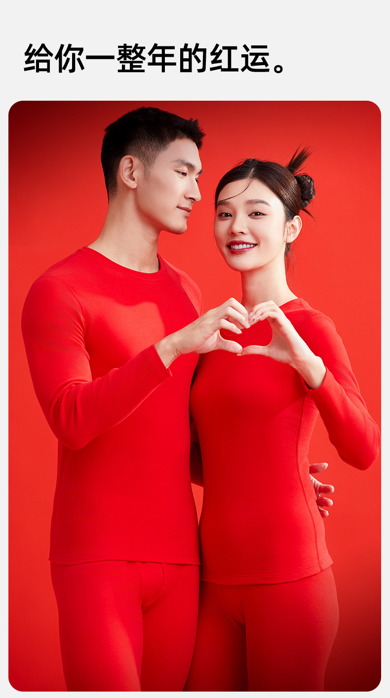 喜庆红色礼盒装本命年保暖内衣秋冬结婚秋衣秋裤男女蛇马年套装