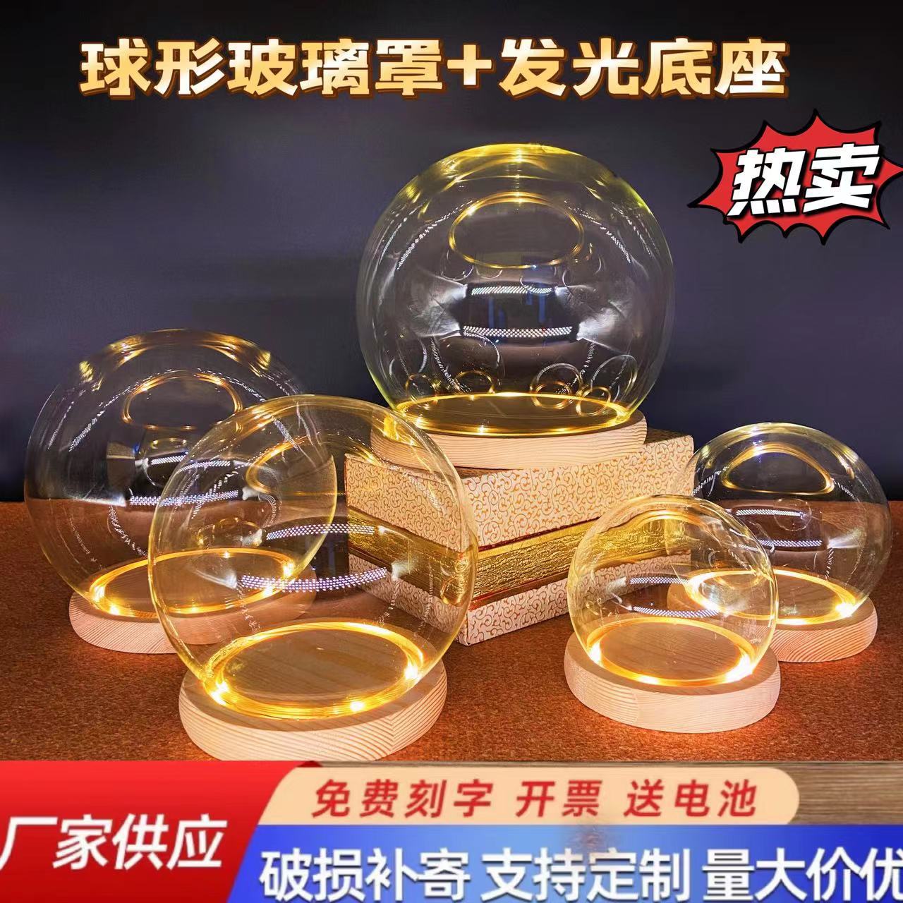 透明な球形ガラスカバー、木製蓋付きケーキ飾り、防塵ディスプレイカバー、ガラス瓶、ビジネスギフト、軽贅沢