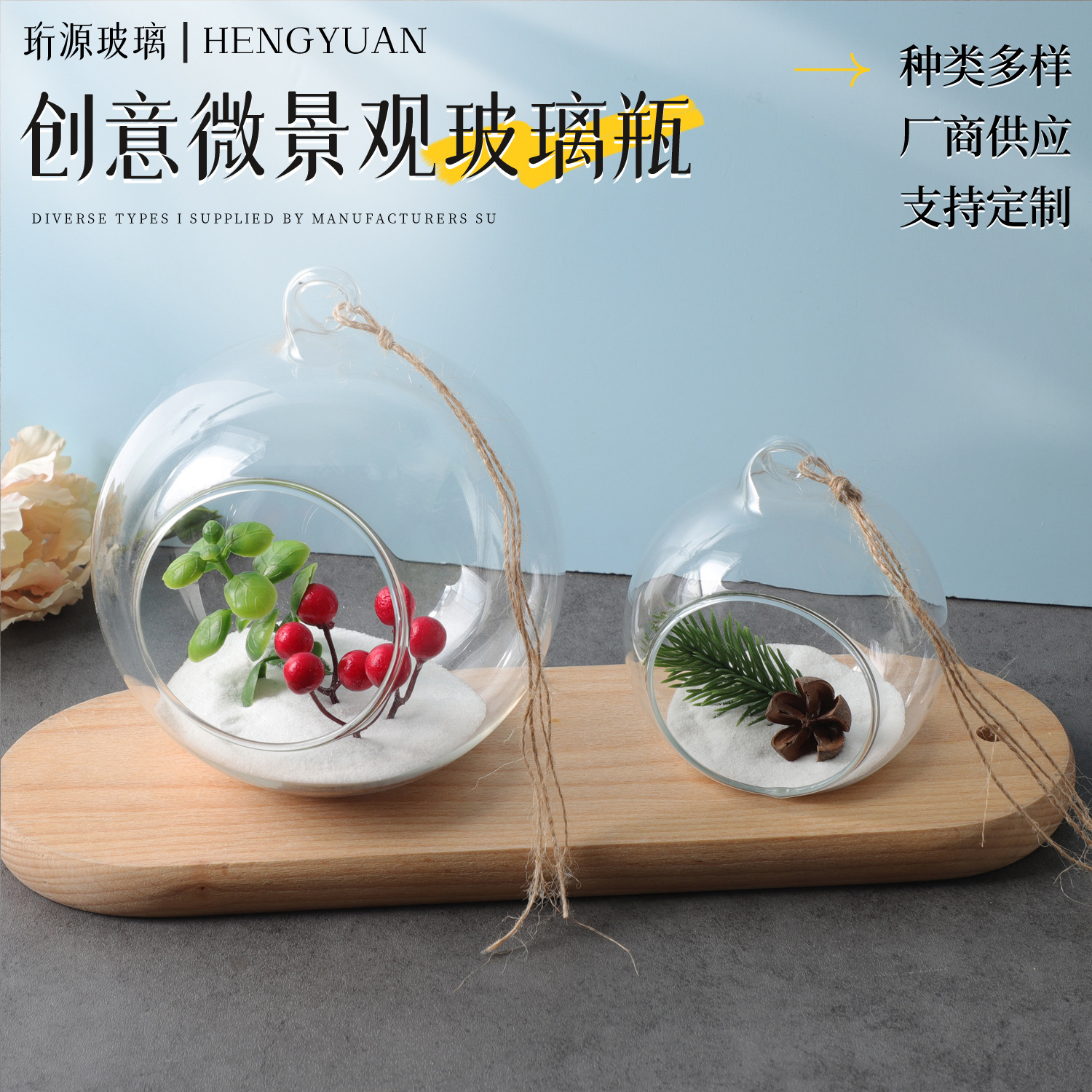 マイクロランドスケープエコボトル 透明ガラス吊り下げ多肉植物苔モス吊り瓶DIY手作り緑植物景観花瓶