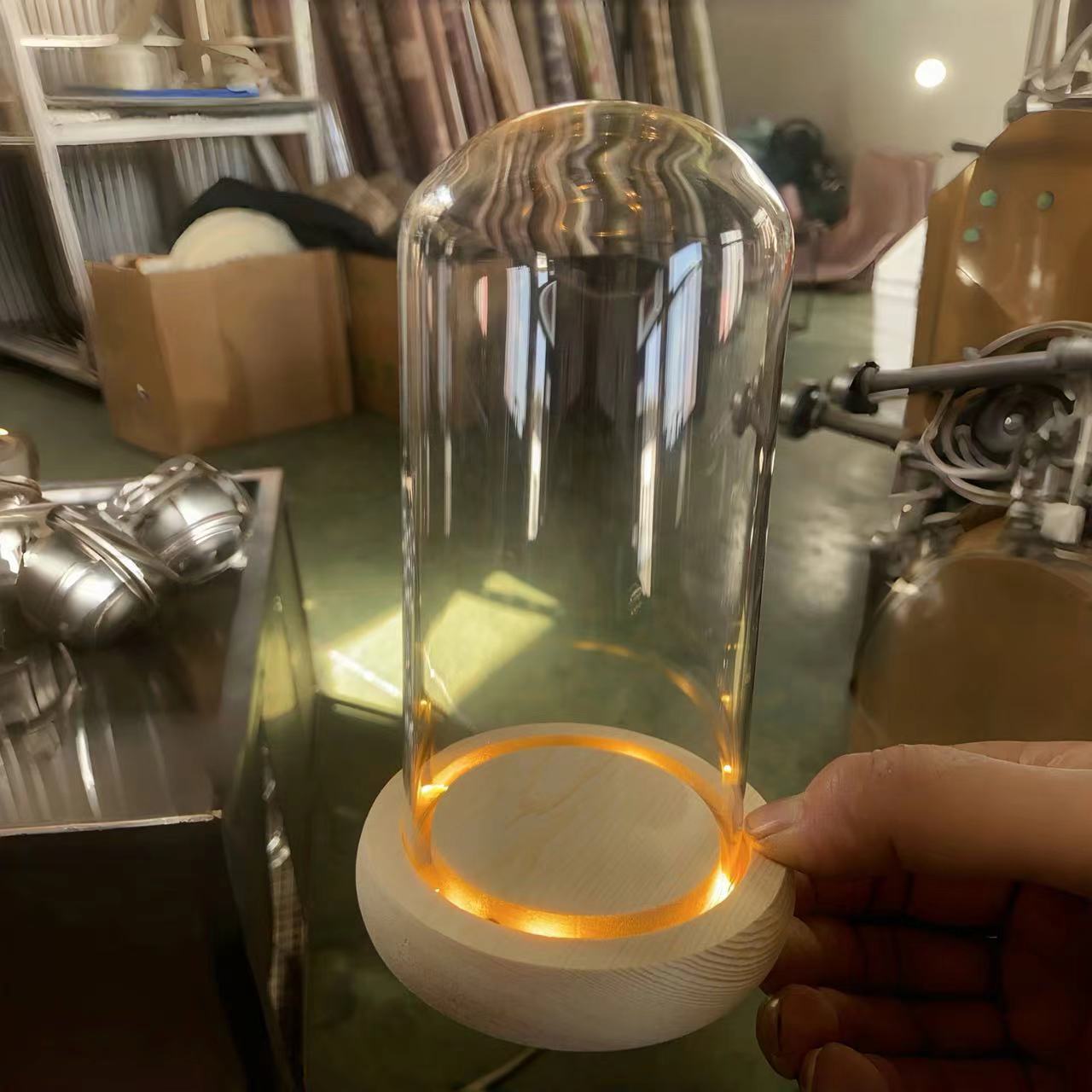 高硼珪酸ガラス製の蓋付きプリザーブドフラワーアレンジメント、ライト付き台座、卓上ビジネスギフト、ガラス瓶、卓上装飾品、クリスタル