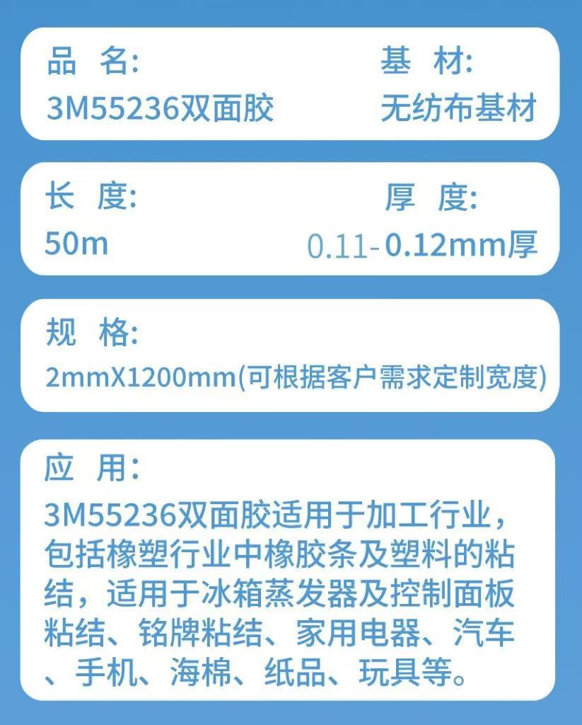 3m両面テープ3m 55236高粘度高温家电真空断热板LEDライト付き工业商业绵テープ