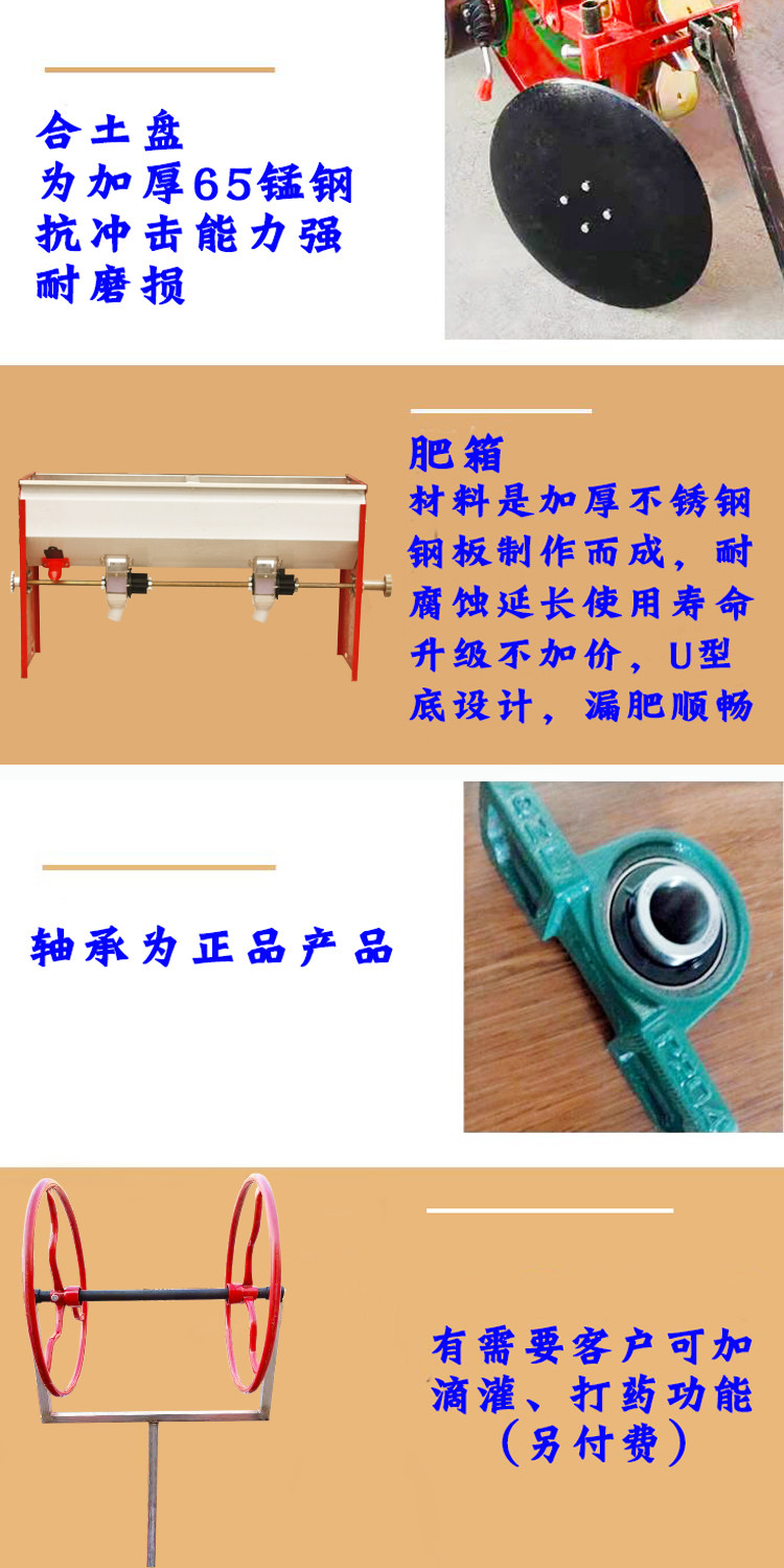 製品仕様 2列コーンシーダー,2列トウモロコシ+ピーナッツシーダー,3列コーンシーダー,3列トウモロコシ+ピーナッツシーダー,4列コーンシーダー,4列トウモロコシ+ピーナッツシーダー,播種部分
