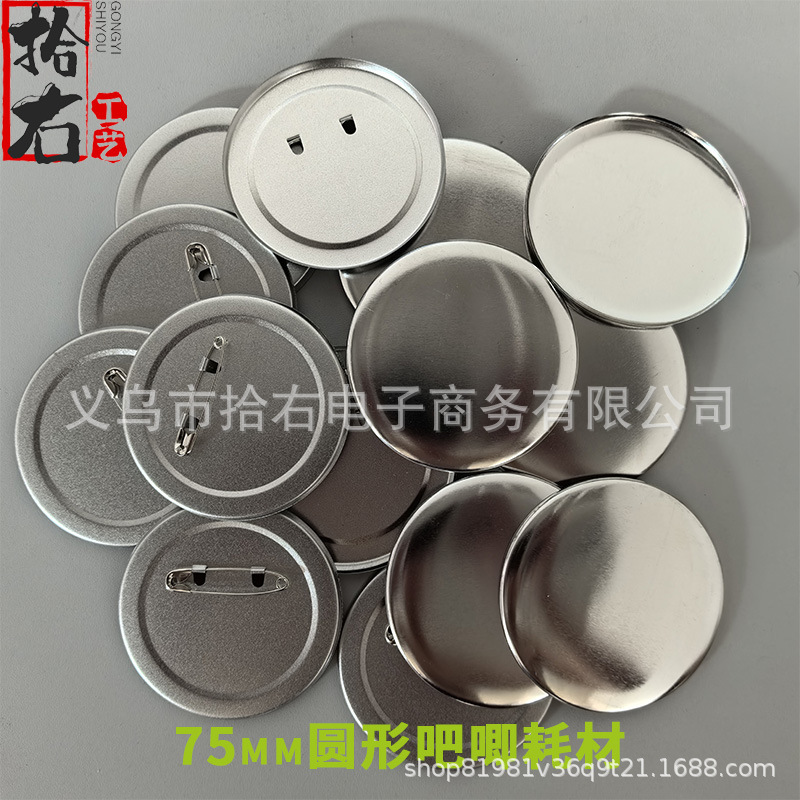75MM 马口铁 加厚防锈 徽章耗材磨砂 胸章材料回形针双闪吧唧配件