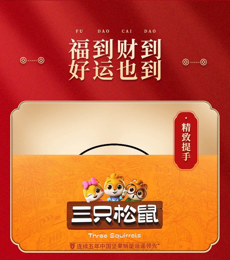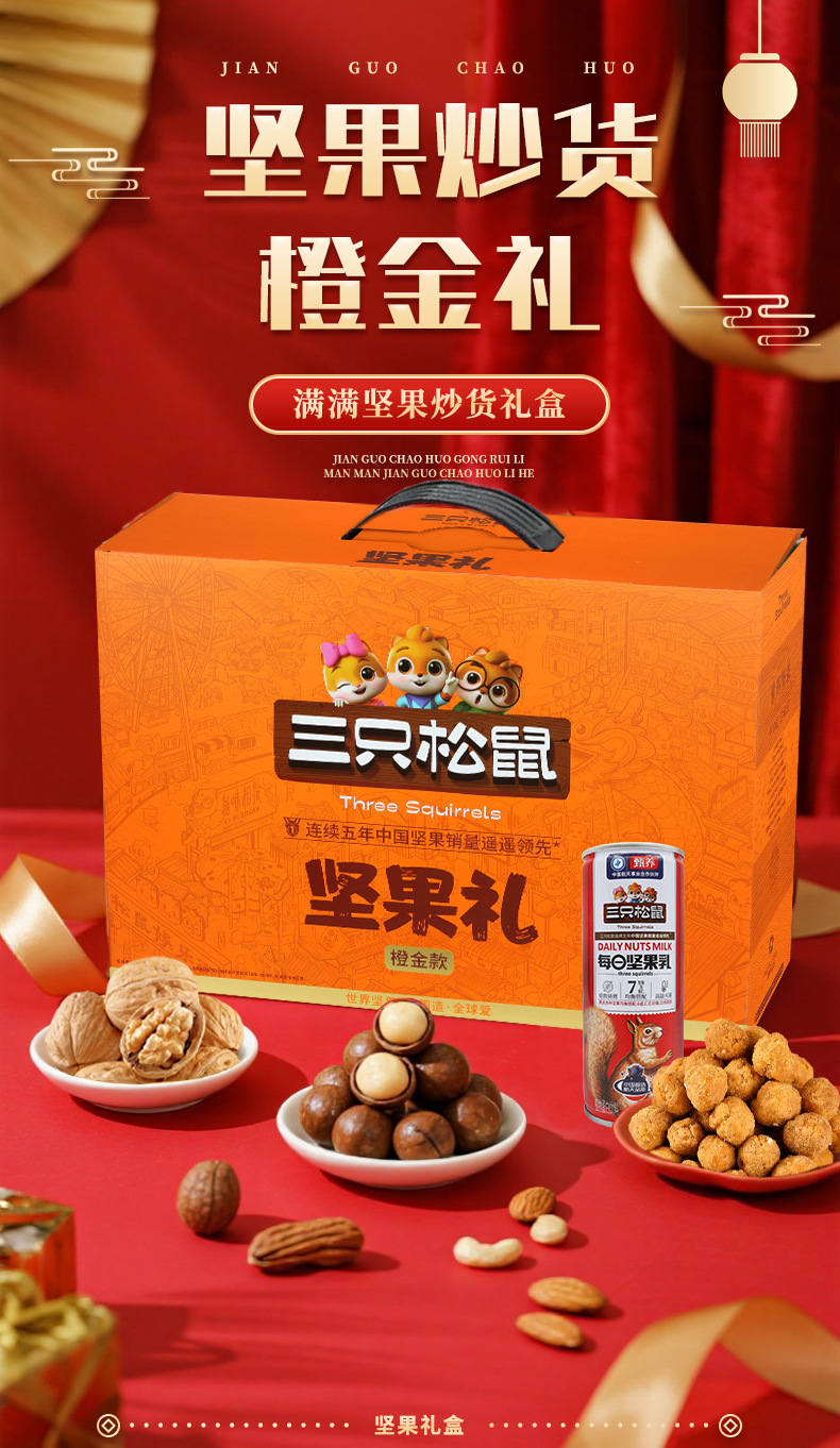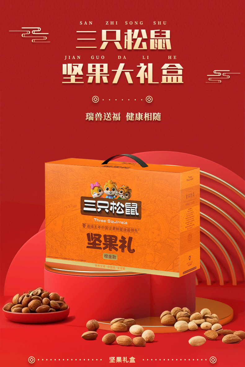 三只松鼠瑞红款坚果礼盒1501g/12袋健康果每日坚果干果大礼包包邮