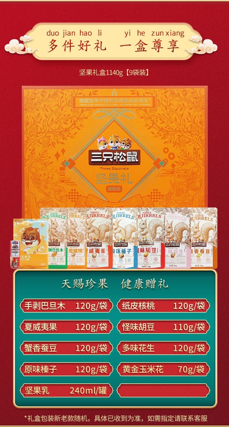 リスオレンジ金ナッツギフトボックス1410g/8袋スナックギフトバッグ毎日ナッツセット