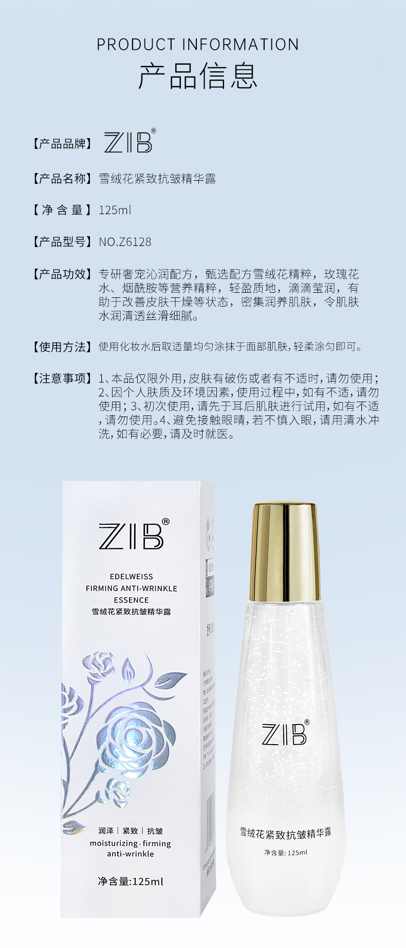 ZIB雪絨毛の花はしわに強い精華露を引き締めて水を補って保湿して潤いがさわやかで、顔の看護の精華液を吸収しやすいです。