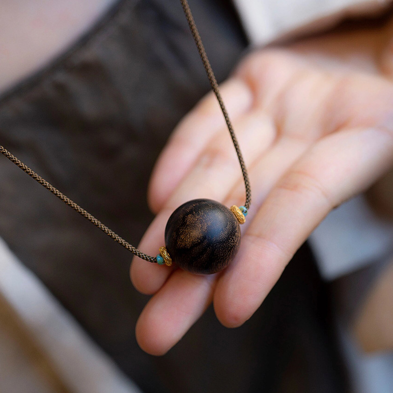 天然新中式文玩高品质奇楠沉香吊坠大颗粒单颗转运珠毛衣链项链女
